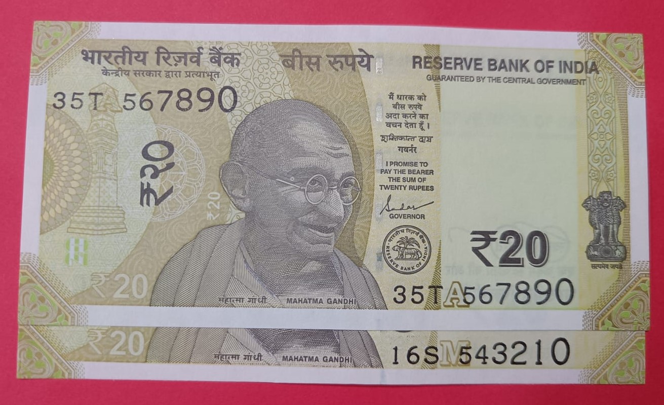 20 Rs Ladder and Reverse Ladder Number GEM UNC Condtion Set of 2 Notes