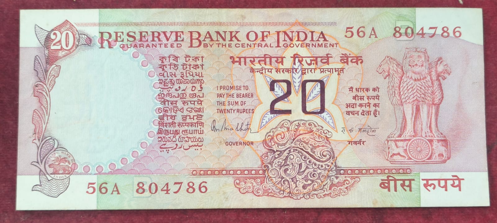 🌟 Rare 20 Rupees banknote with Governor R.N. Malhotra’s signature