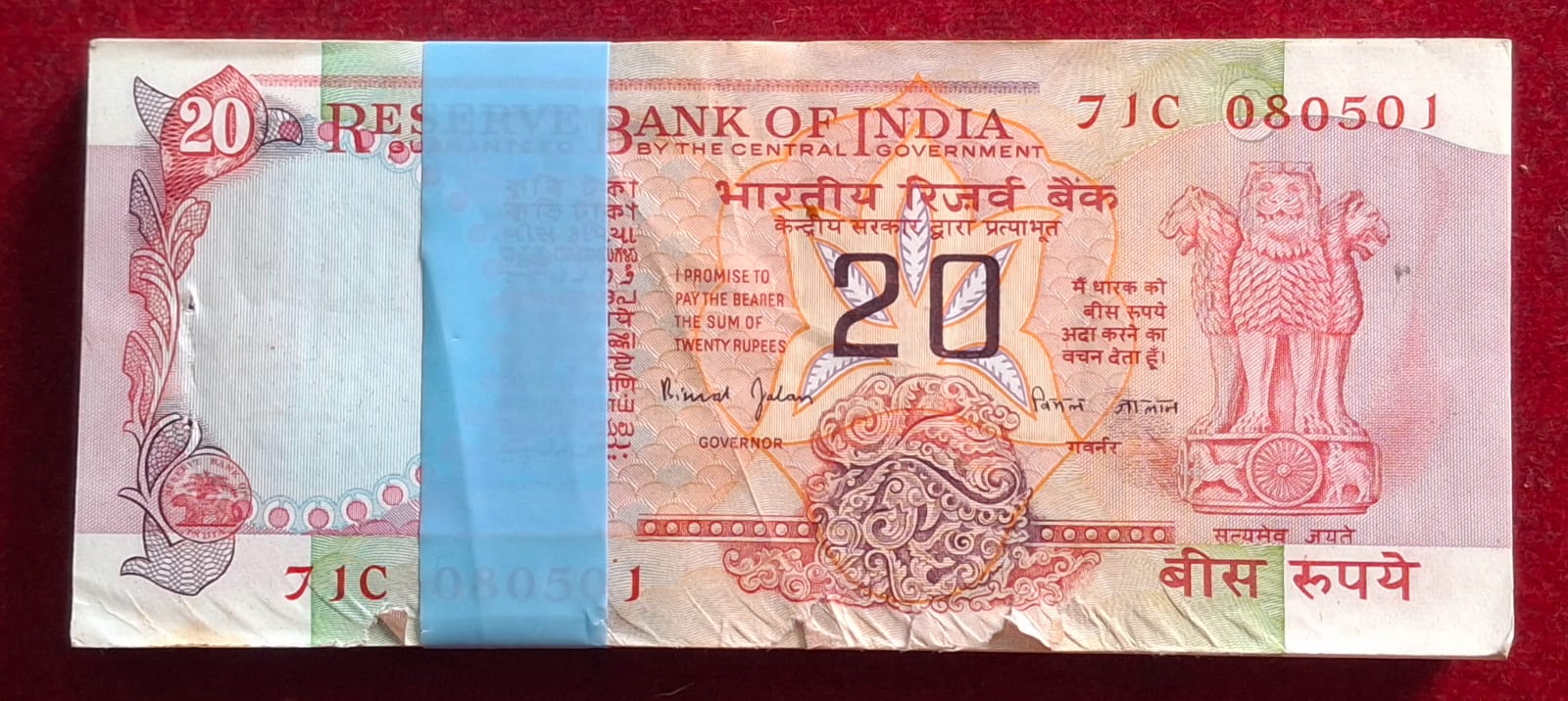 20 RUPEES WHEEL BIRTHDAY GOVERNOR BIMAL JALAN RARE (100 NOTE) PIN REMOVED SERIAL PACKET