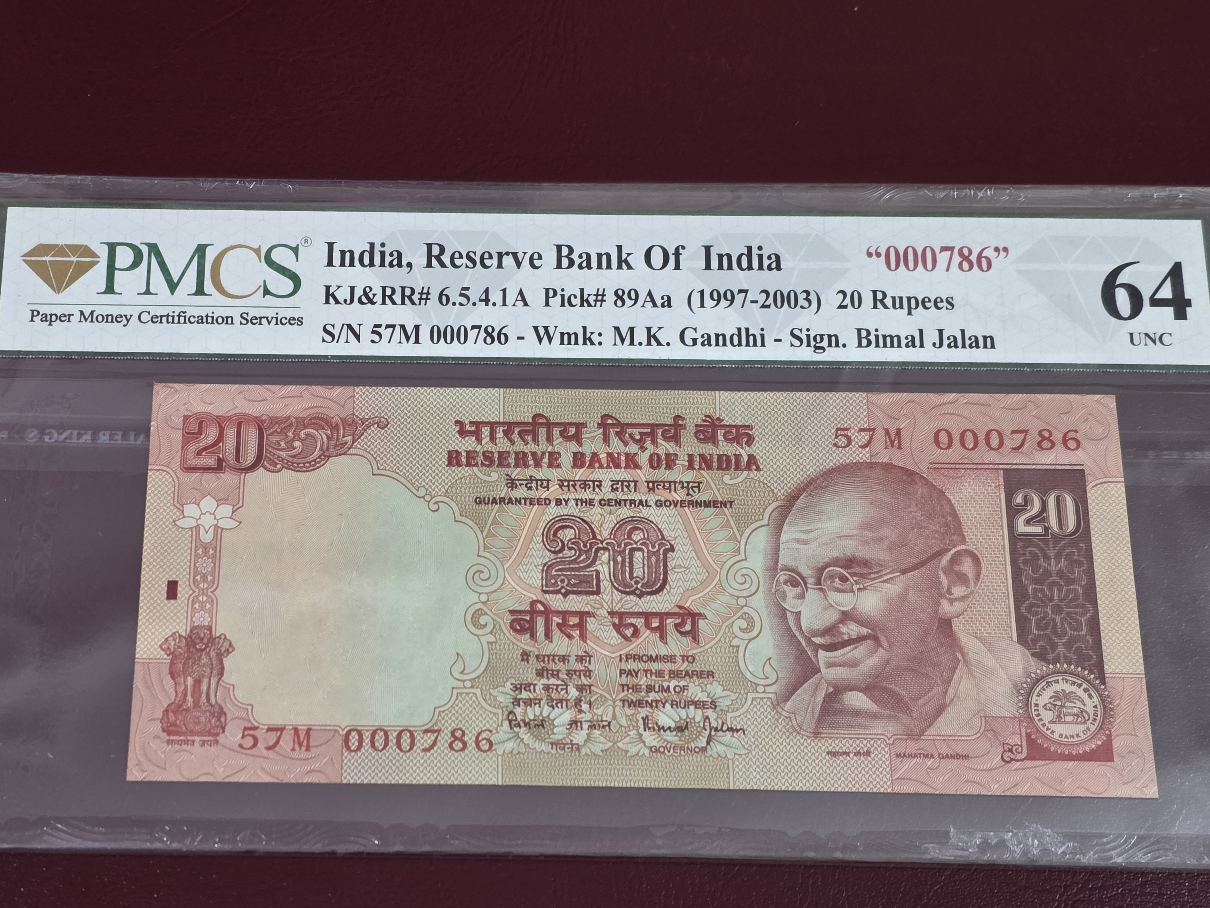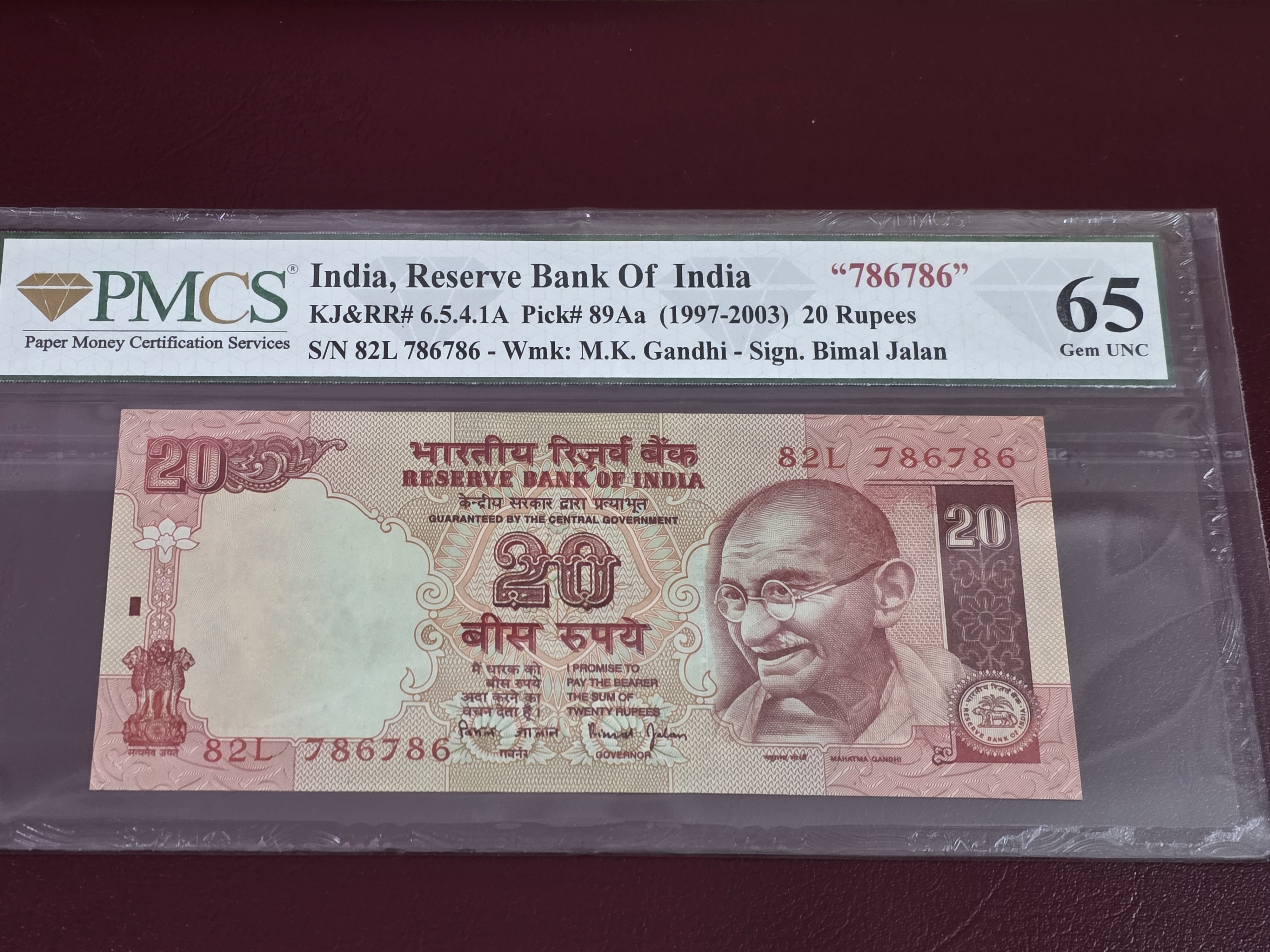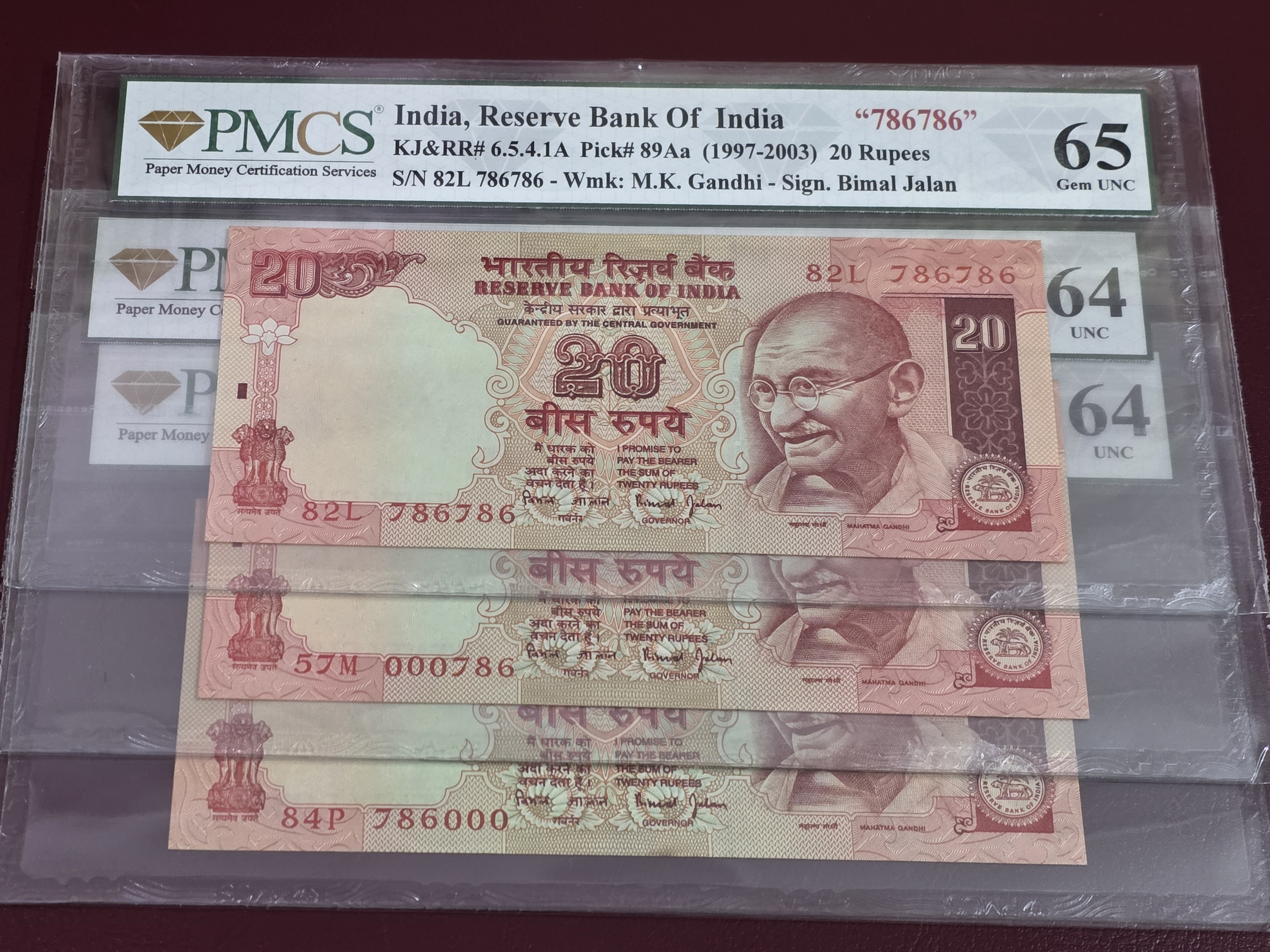 20rs 3 notes set 786000, 000786, 786786 signed by Bimal. Scarce issue