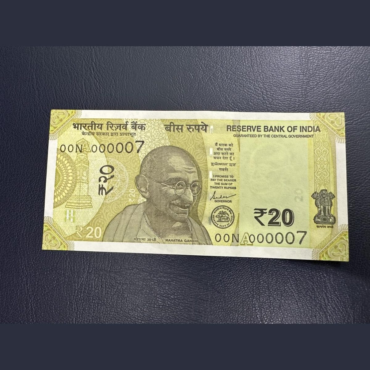 - 20rs with fancy number 000007 with 00 prefix 00-000007