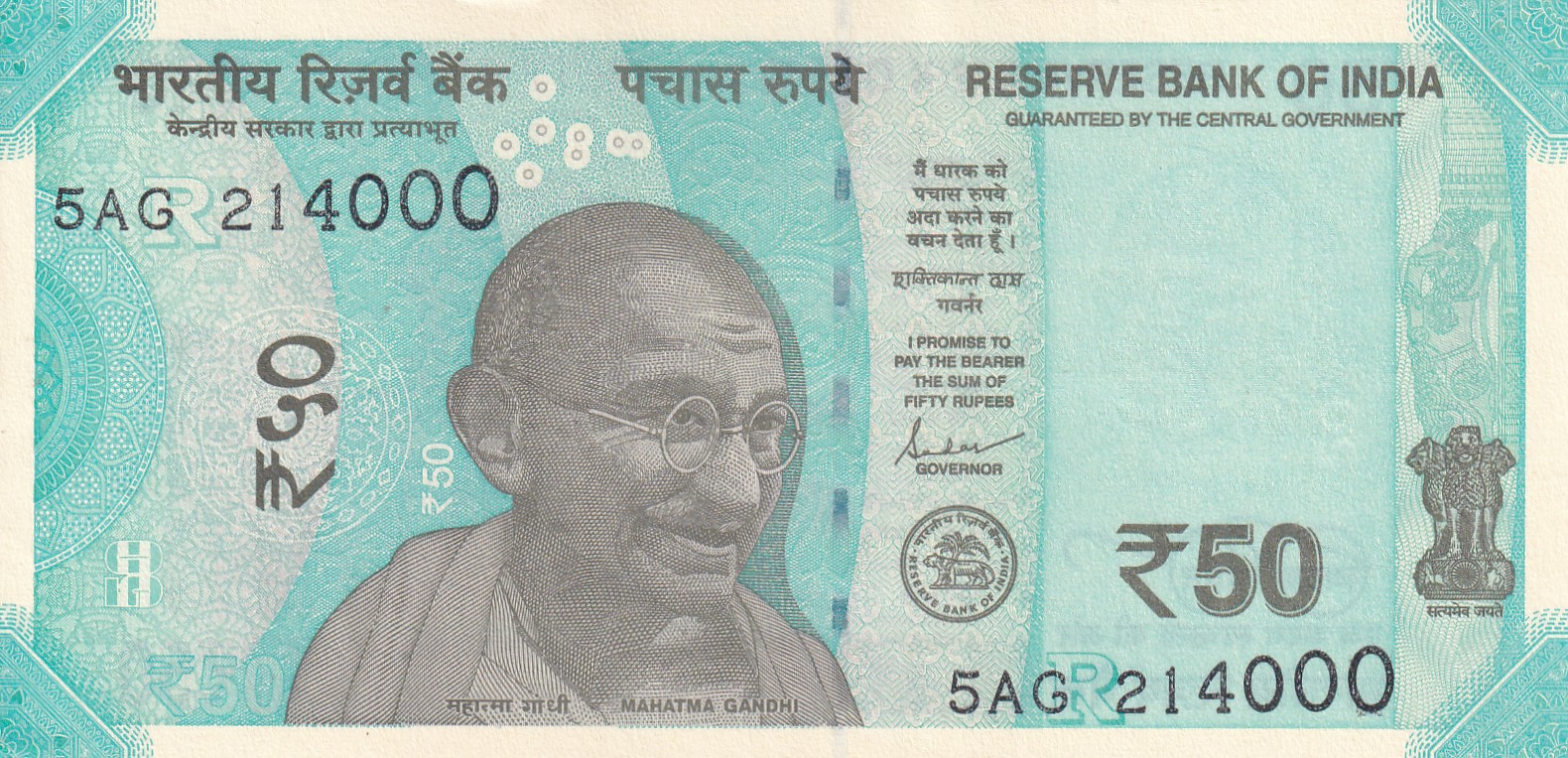 214000 FANCY NUMBER 50 RUPEES GEM UNC RARE NOTE