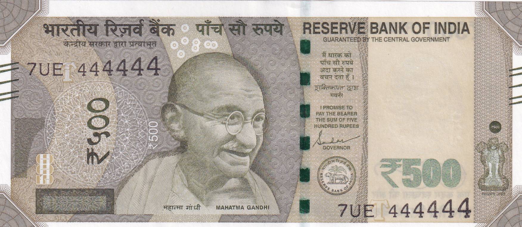 444444 FANCY NUMBER 500 RUPEES GEM UNC RARE NOTE