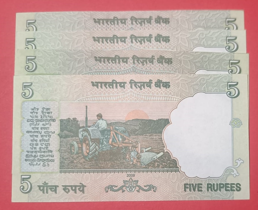 5 Rs Tractor issue Fancy Number Set of 4 Notes Same Prefix GEM UNC Condition