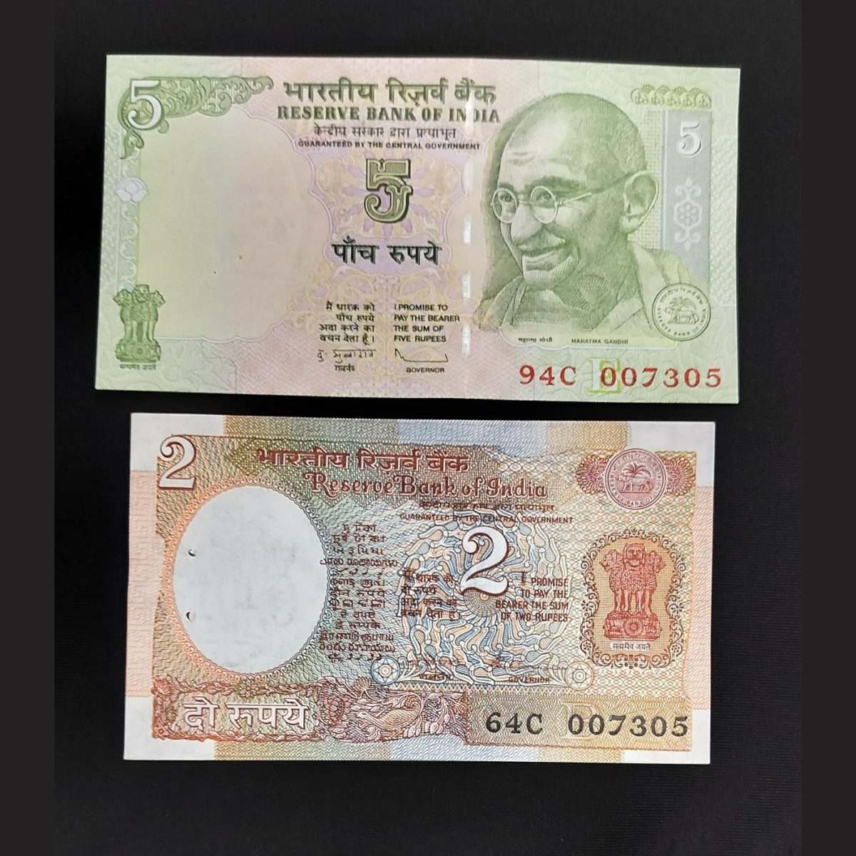 5 Rupee 2 Rupee Fancy JAMES BOND JODI NO 007305 UNC