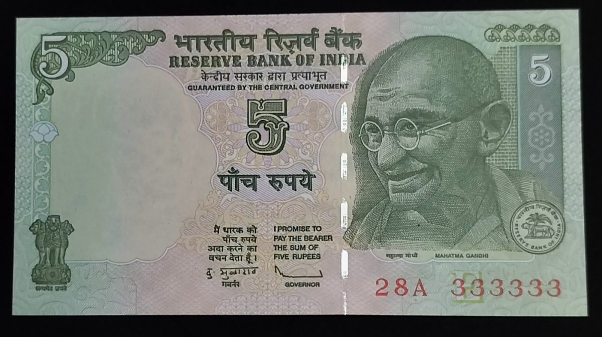 🌟 Rare 5 Rupee Gandhi Note with Fancy No. 333333
