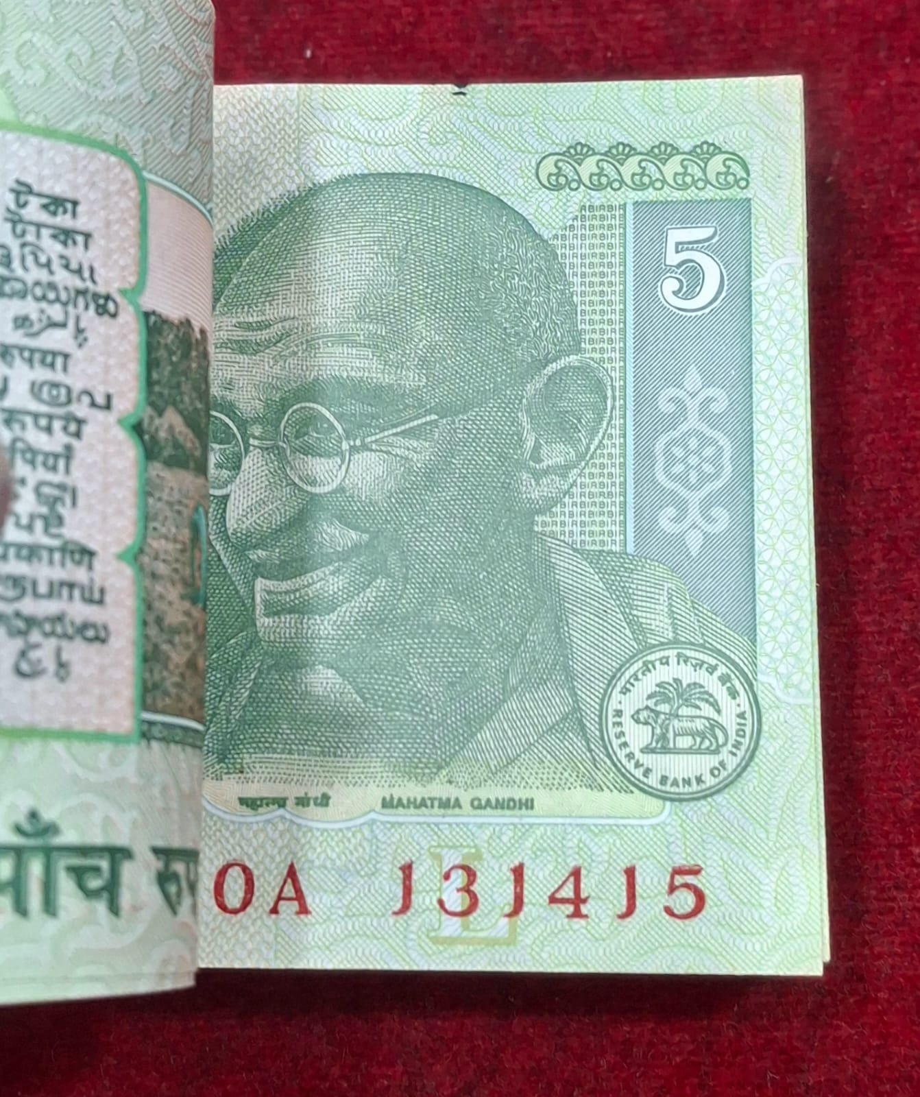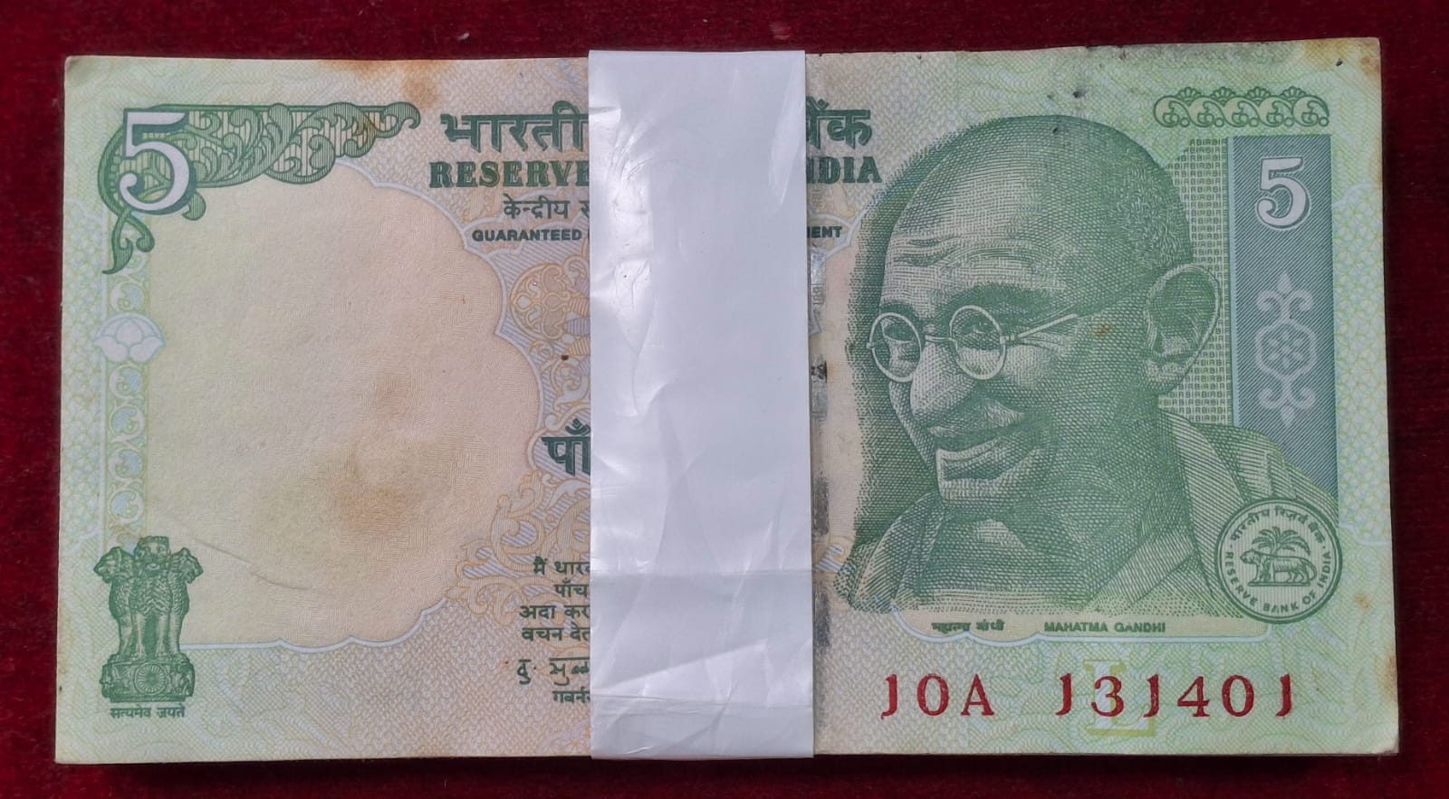 5 RUPEES GANDHI GOVERNOR D.SUBBARAO RARE ( 100 NOTE ) RARE SERIAL PACKET WITH LADDER NUMBER 131415
