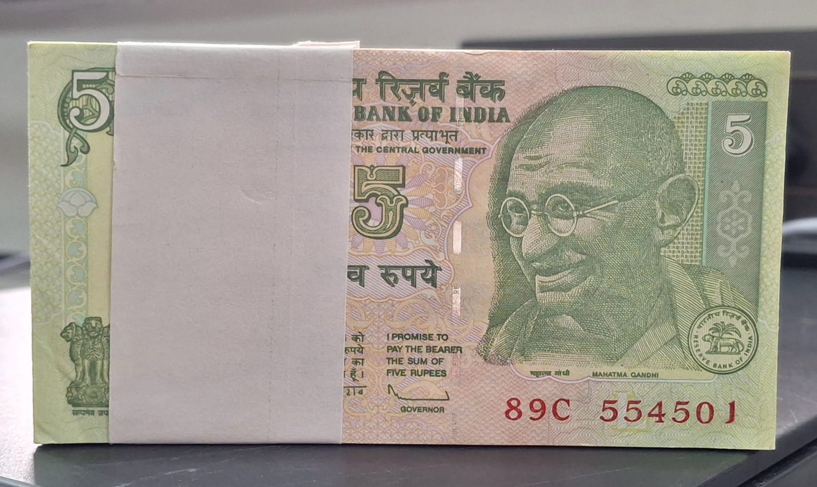 5 RUPEES GANDHI GOVERNOR D.SUBBARAO RARE ( 100 NOTE) SERIAL PACKET WITH DOUBLING NUMBER 554554