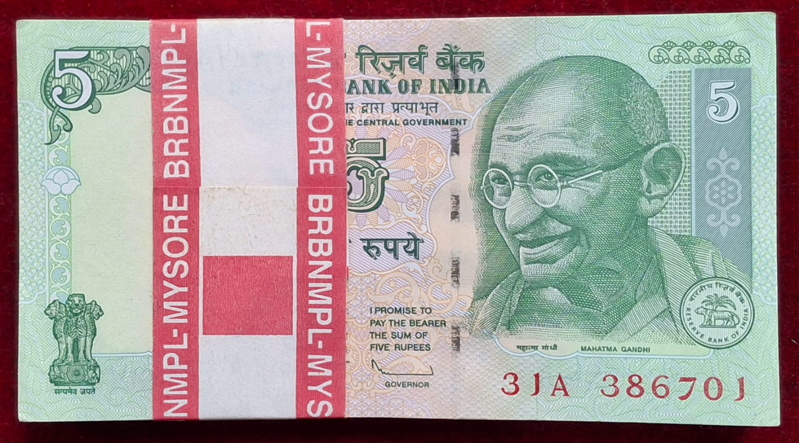 5 RUPEES GANDHI GOVERNOR D.SUBBARAO RARE SERIAL PACKET WITH FANCY NUMBER ENDING 786