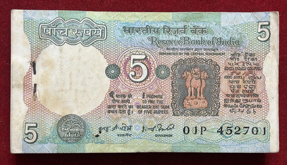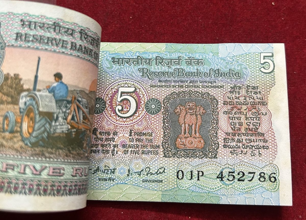 5 RUPEES SERIAL PACKET GOVERNOR I.G.PATEL with FANCY NUMBER (452 786) RARE PACKET