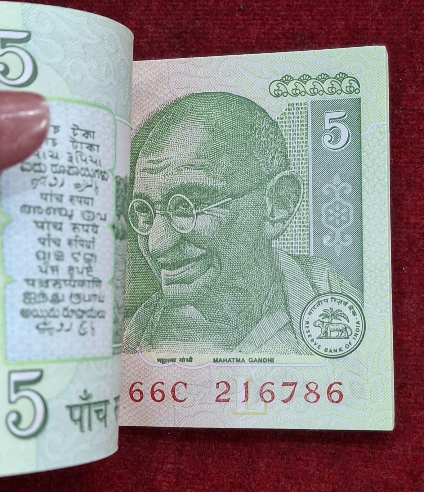 5 RUPEES TRACTOR GOVERNOR D.SUBBARAO GEM UNC RARE ( 100 NOTE ) SERIAL PACKET WITH FANCY NUMBER ENDING 786