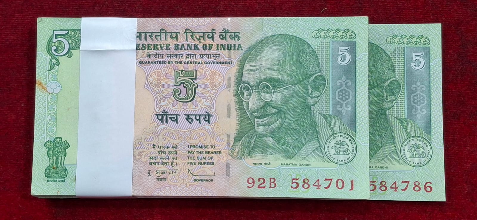 5 RUPEES TRACTOR GOVERNOR D.SUBBARAO GEM UNC RARE ( 100 NOTE ) SERIAL PACKET WITH FANCY NUMBER ENDING 786