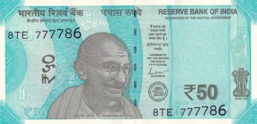 50 Rupees Fancy number 777786 Republic India Note UNC Condition
