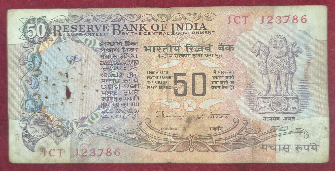 50 RUPEES PARLIAMENT C. RAGARAJAN FANCY NUMBER 123786 RARE NOTE