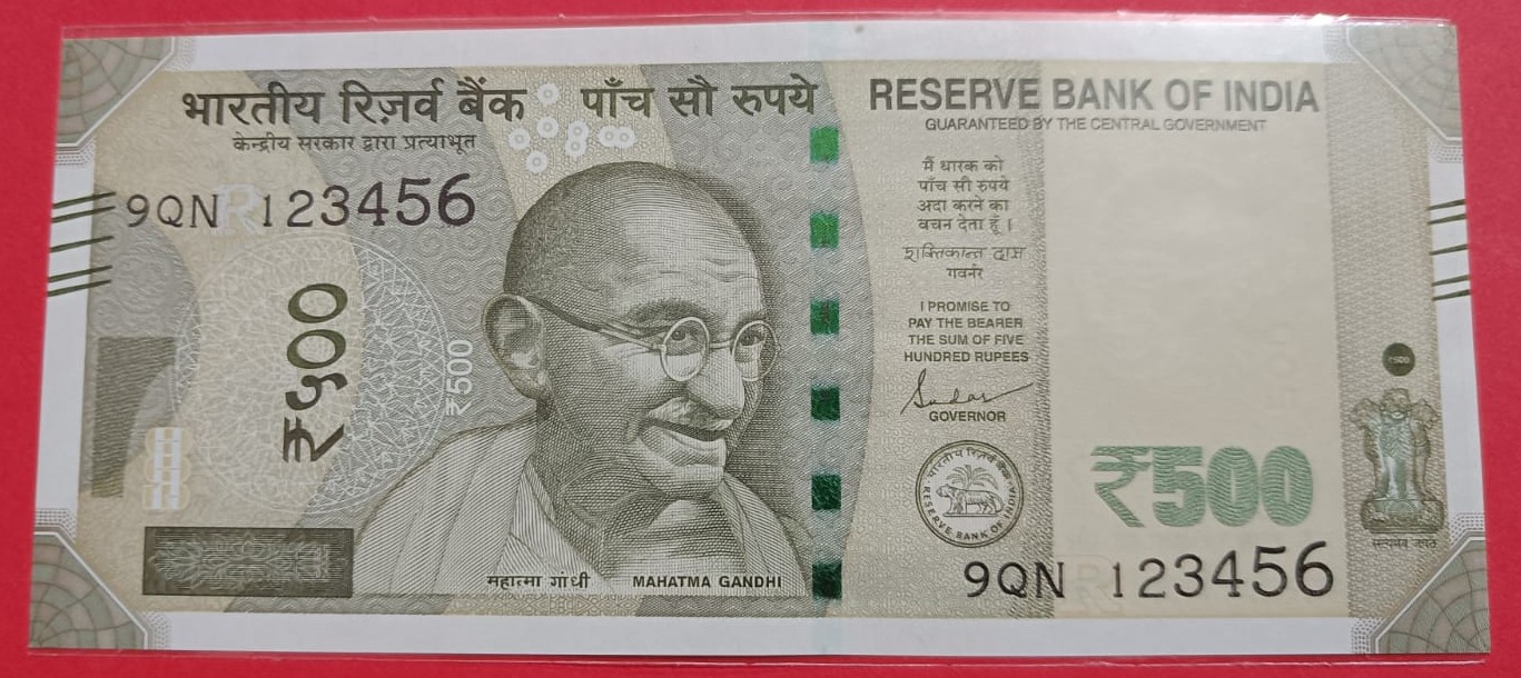 What sets this banknote apart is its unique serial number, 123456, which is considered a “fancy number” that adds to its appeal and rarity. Collectors often seek out such numbers due to their aesthetic and potential investment value. The 500 Rs denomination has historical significance as it reflects India’s evolving economy and serves as a reminder of significant monetary policies in the country’s history.