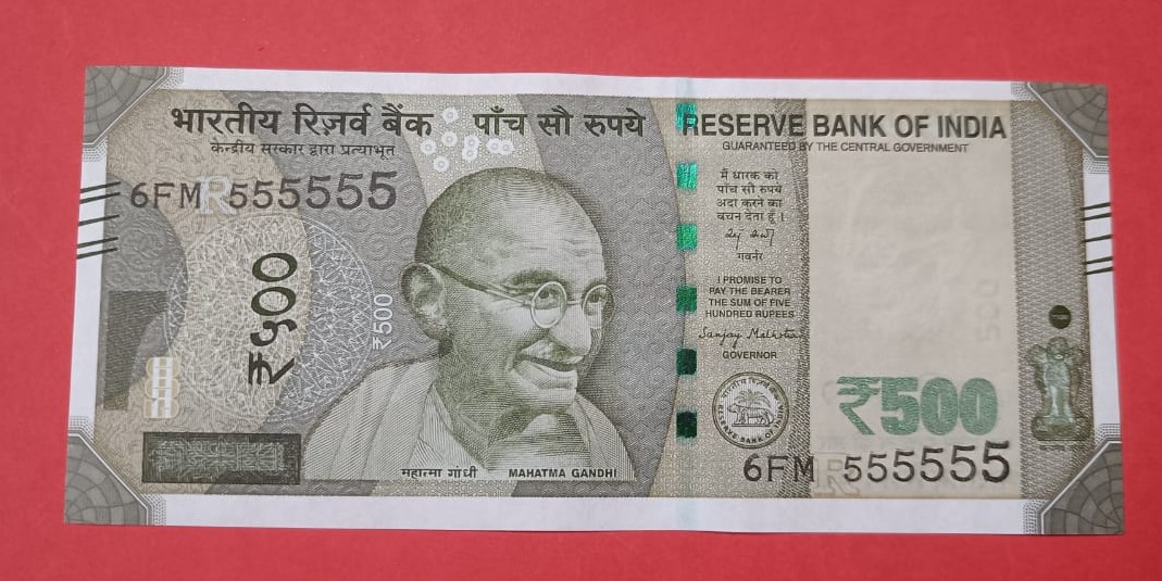 500 Rs 555555 GEM UNC Note Fancy Number