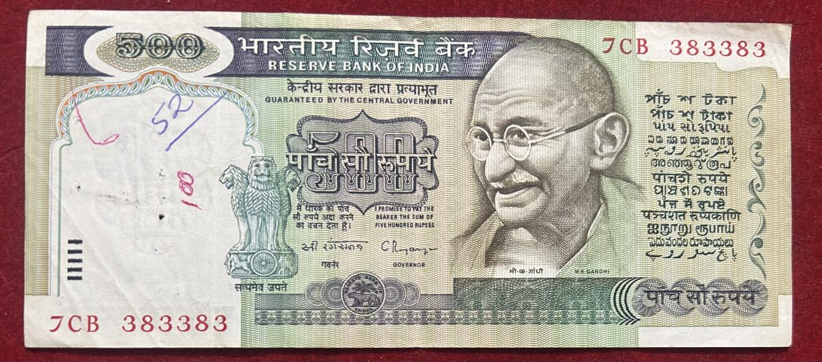 500 rupees Dhandi Isha with fancy Doubling number (383 383) joda number