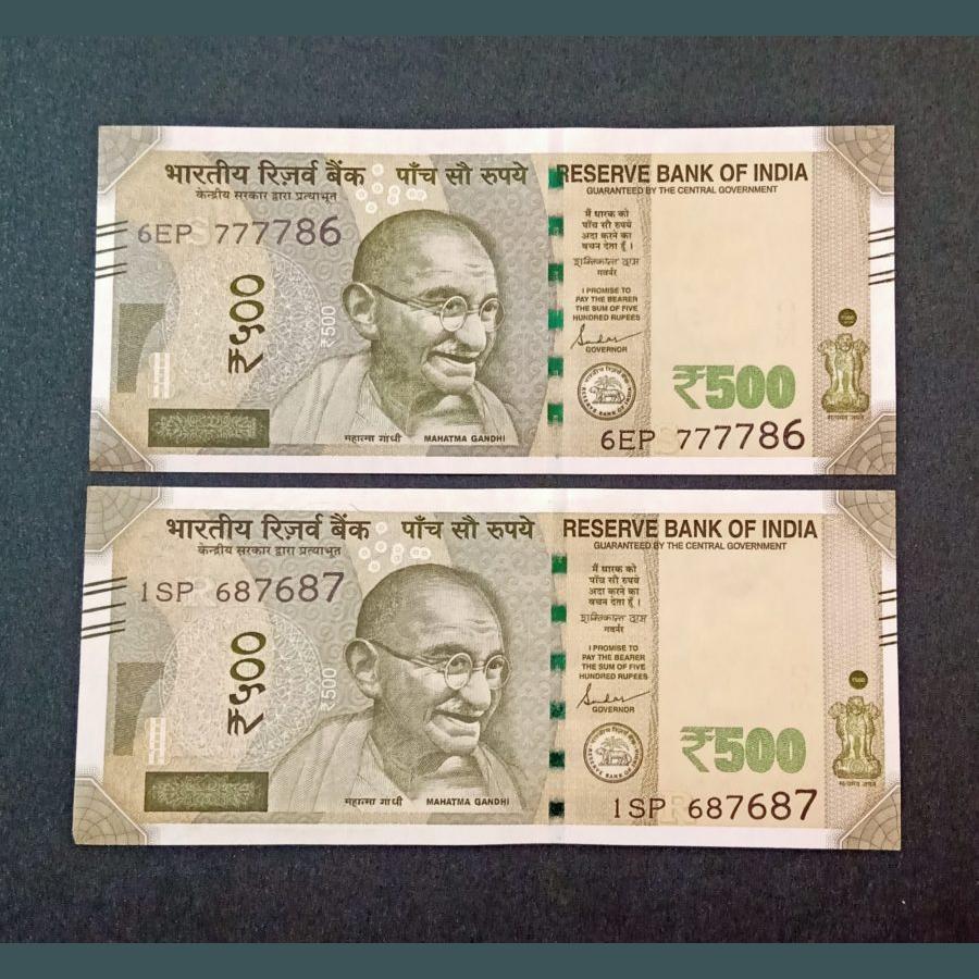 500 Rupees New Issue FANCY Numbers “777786” and “687687” REVERSE 786786 RARE Crisp UNC Grades.