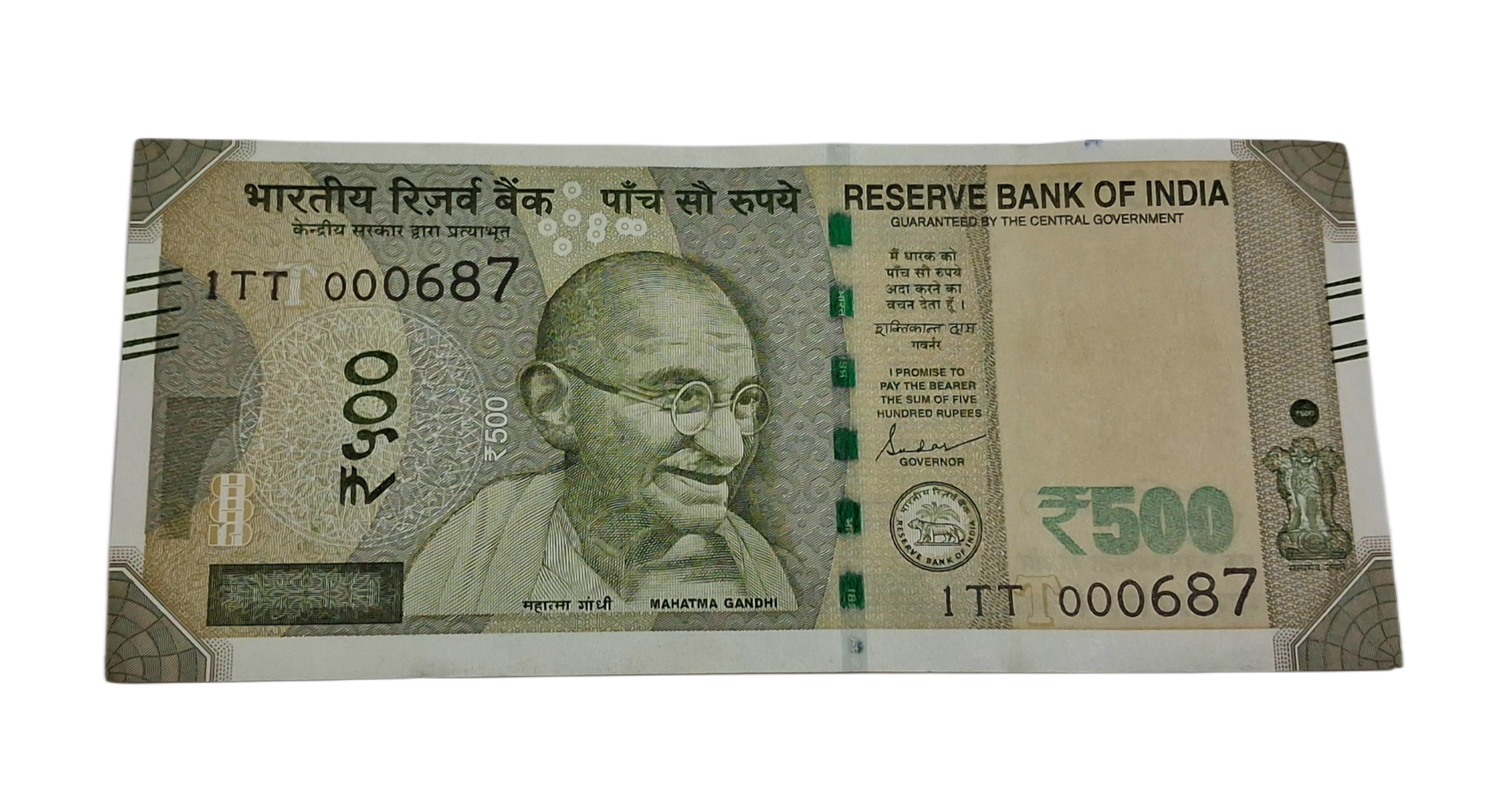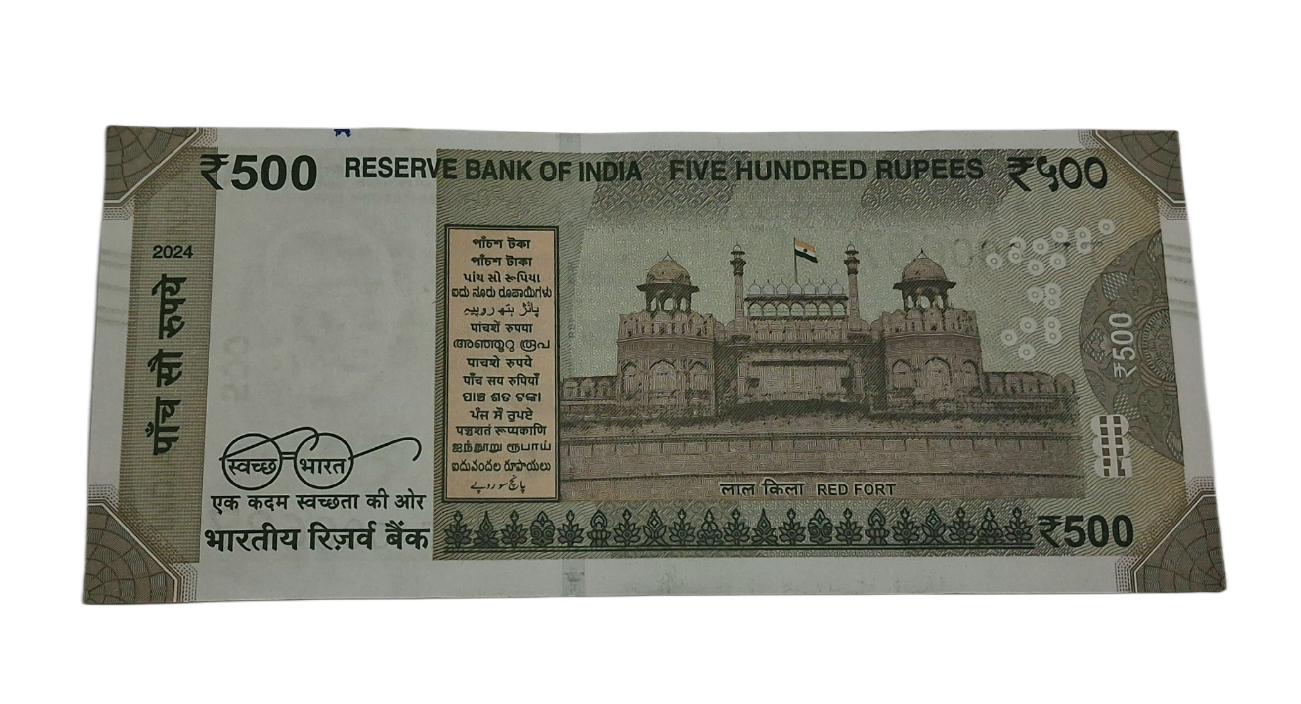 500 Rupees SEMI FANCY with 1TT Prefix Reverse 000786 in UNC Grade.