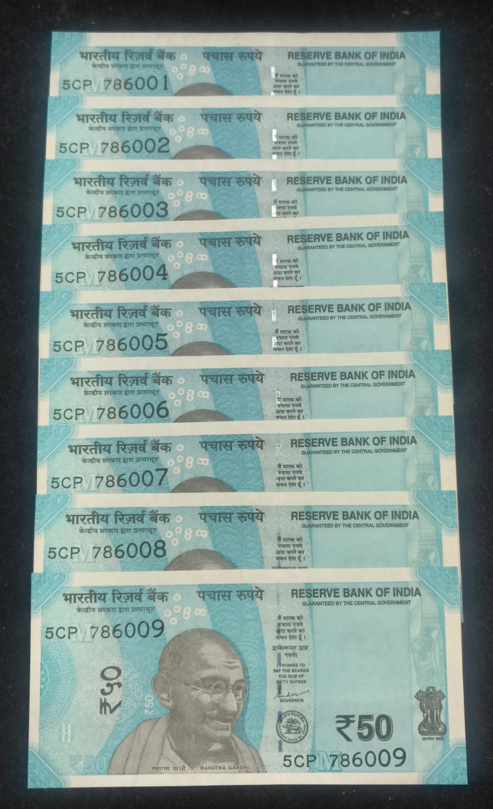 786001 – 786009 ( 9 PCS SET) 50 RUPEES GEM UNC RARE ( 9 NOTE SET)