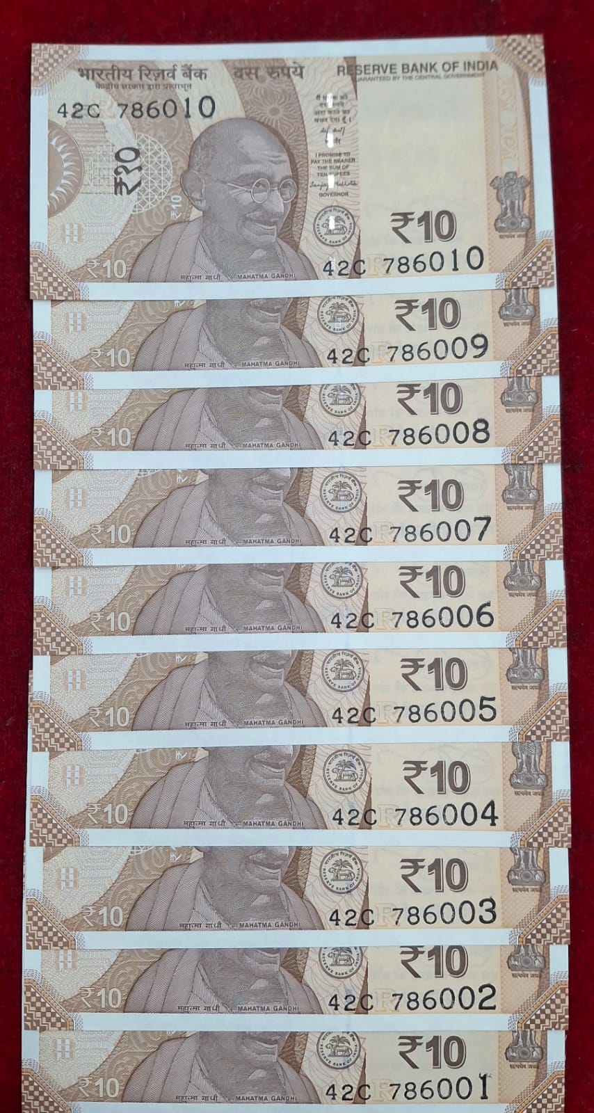 786001 -786010 ( 10 PCS SET) 10 RUPEES GEM UNC RARE ( 10 NOTE SET)