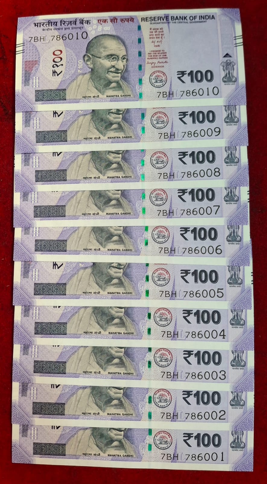 786001 – 786010 ( 9 PCS SET) 100 RUPEES GEM UNC RARE ( 9 NOTE SET)