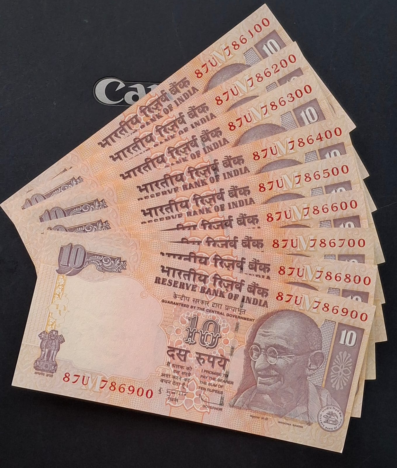 786100 – 786900 ( 9 PCS SET) 10 RUPEES GOVERNOR D.SUBBARAO GEM UNC RARE ( 9 NOTE SET)