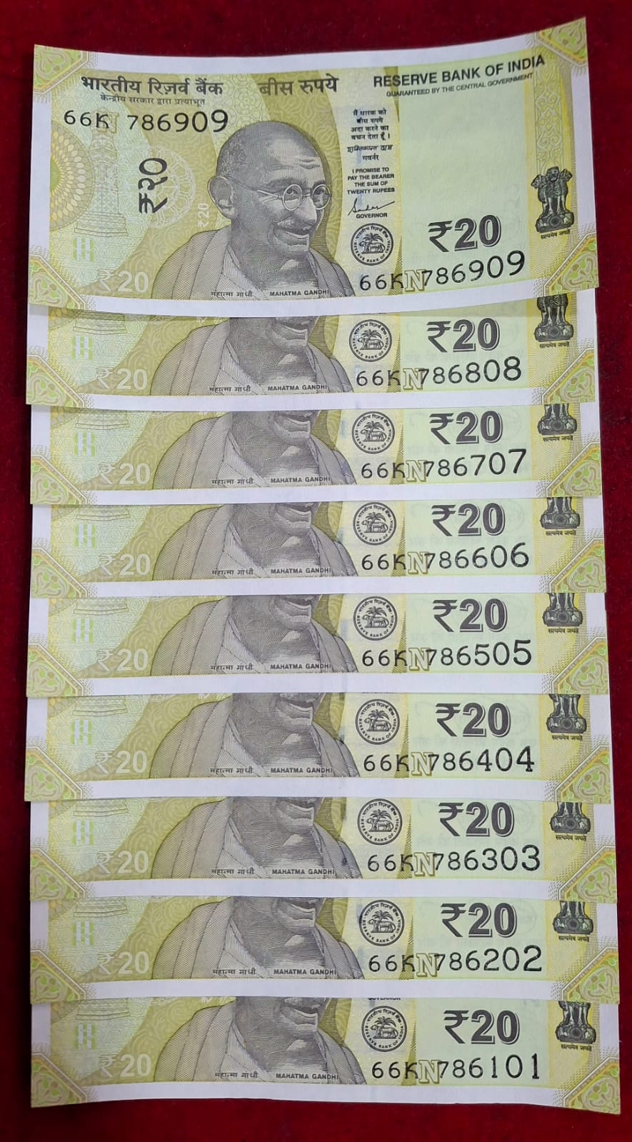 786101 – 786909 ( 9 PCS SET) 20 RUPEES GEM UNC RARE ( 9 NOTE SET)