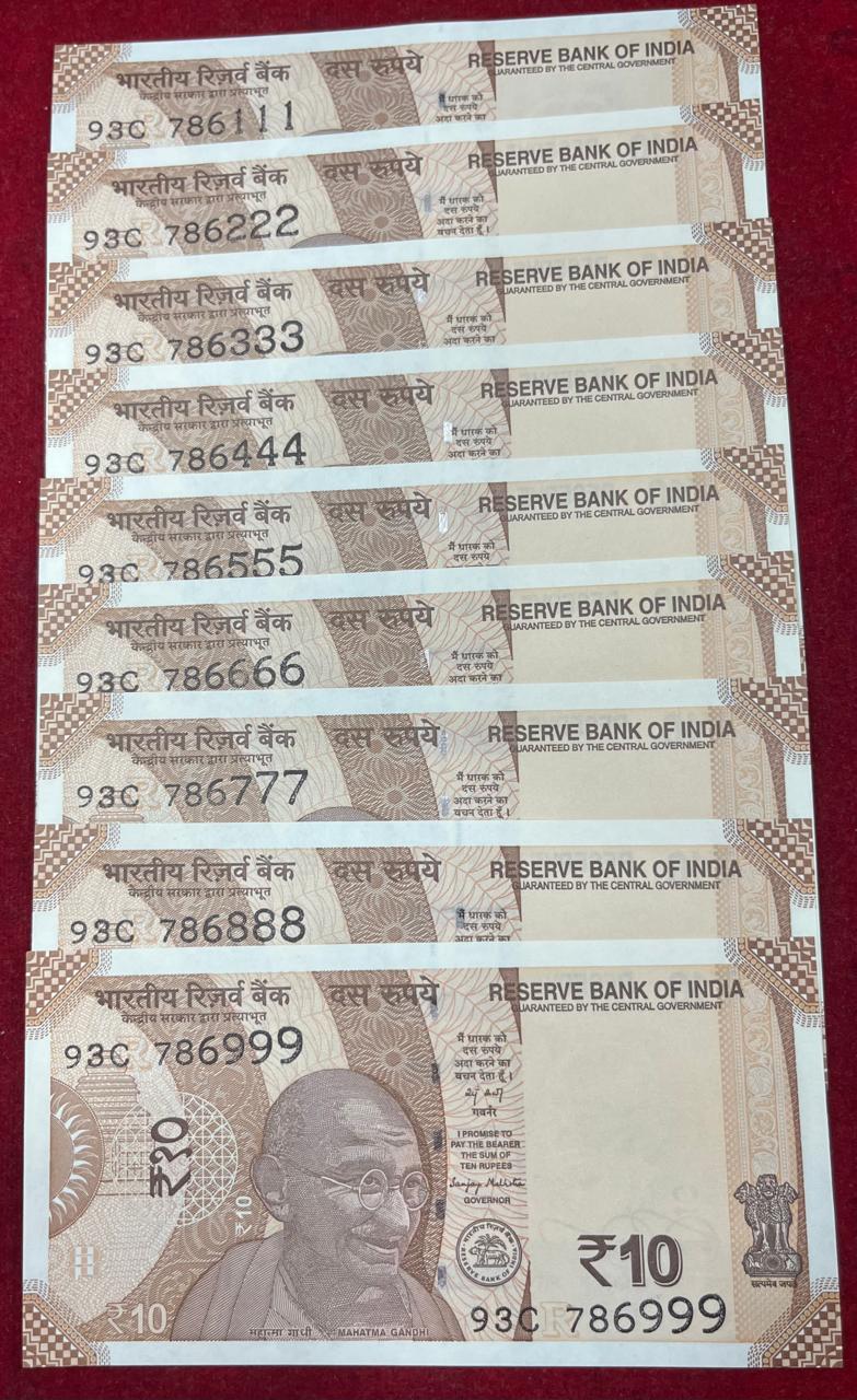 786111 – 786999 ( 9 PCS SET) 10 RUPEES GEM UNC RARE ( 9 NOTE SET)