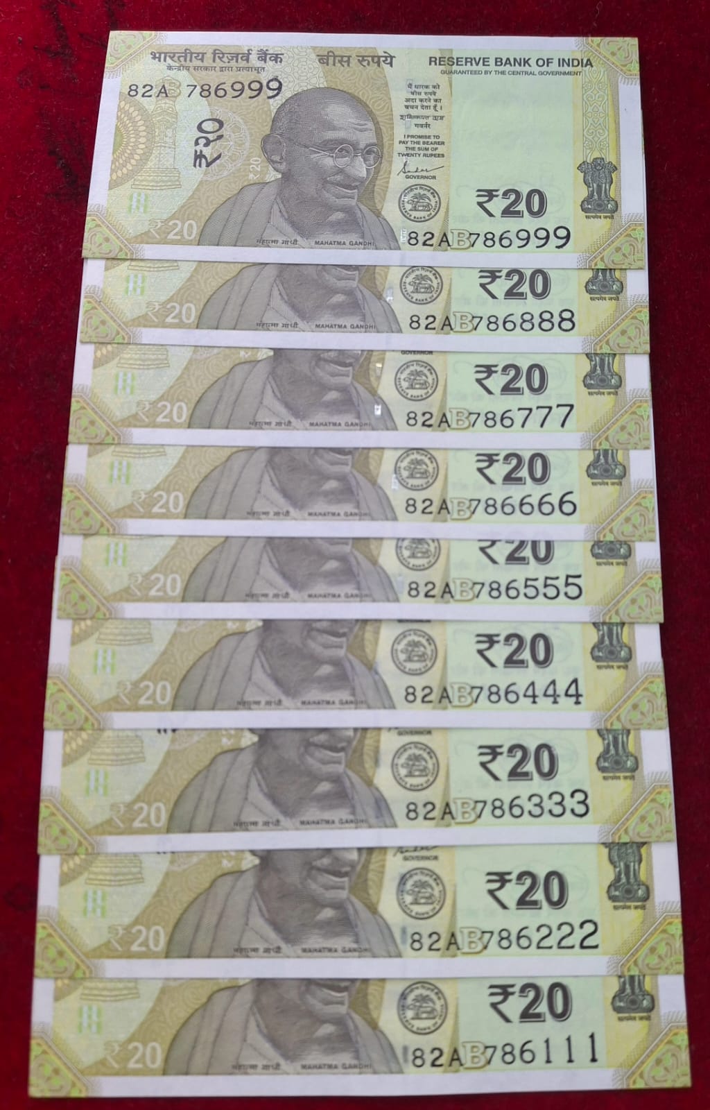 786111 – 786999 ( 9 PCS SET) 20 RUPEES GEM UNC RARE ( 9 NOTE SET)