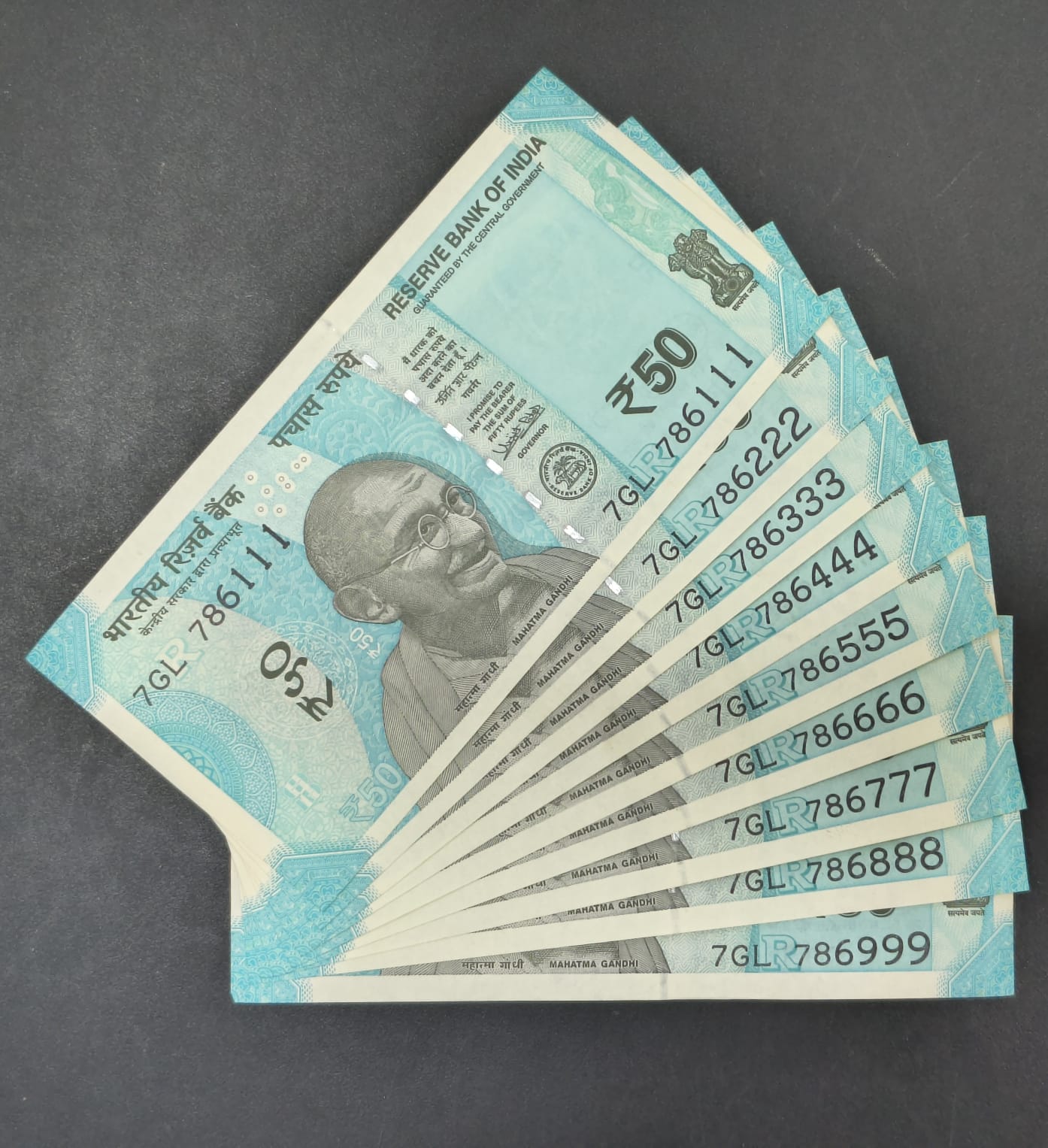 786111 – 786999 FANCY NUMBER 50 RUPEES GEM UNC SAME PREFIX RARE ( 9 NOTE SET)