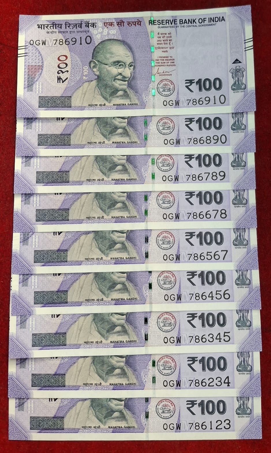786123 – 786910 ( 9 PCS SET) 100 RUPEES GEM UNC RARE ( 9 NOTE SET)