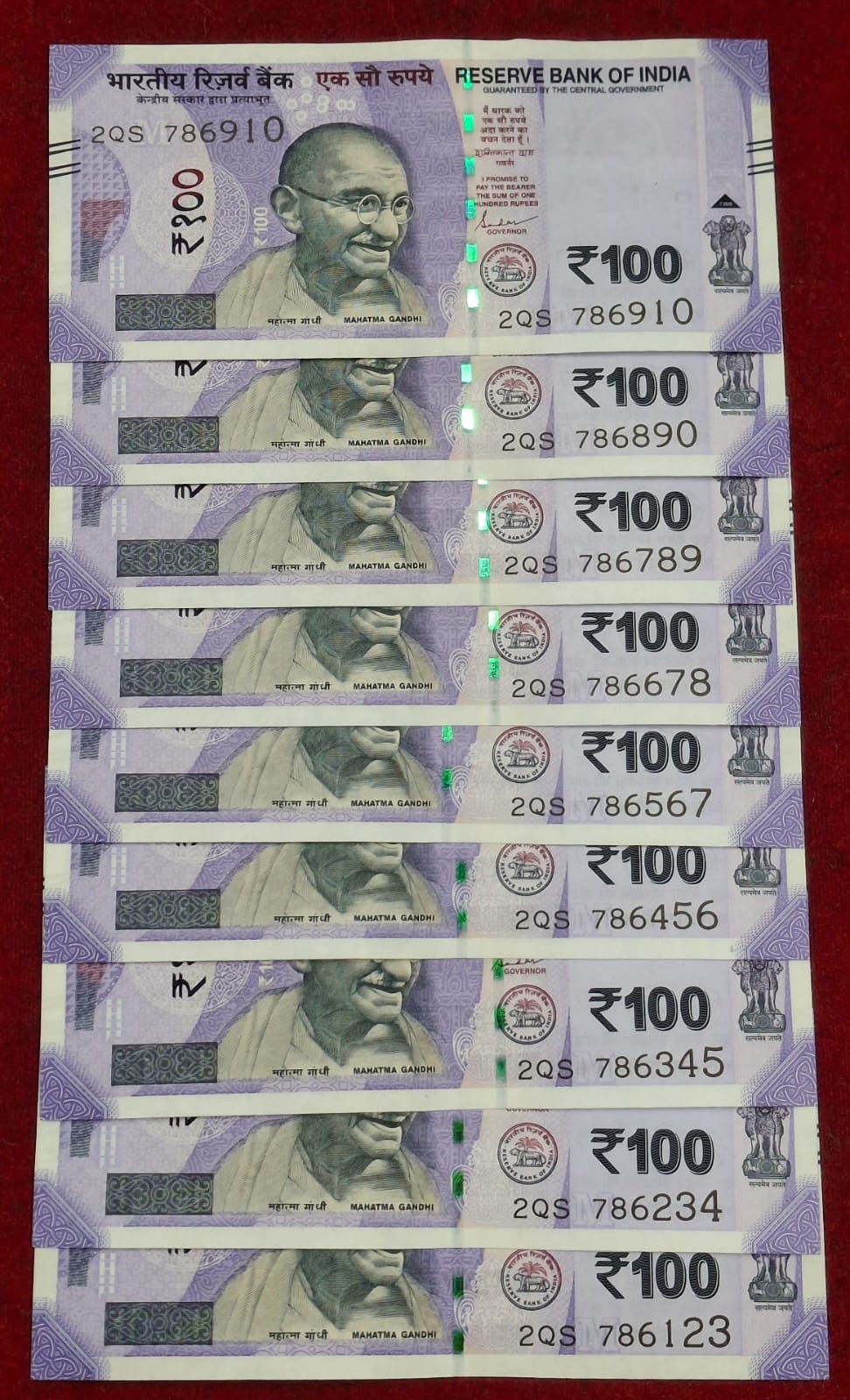 786123 – 786910 ( 9 PCS SET) 100 RUPEES GEM UNC RARE ( 9 NOTE SET)