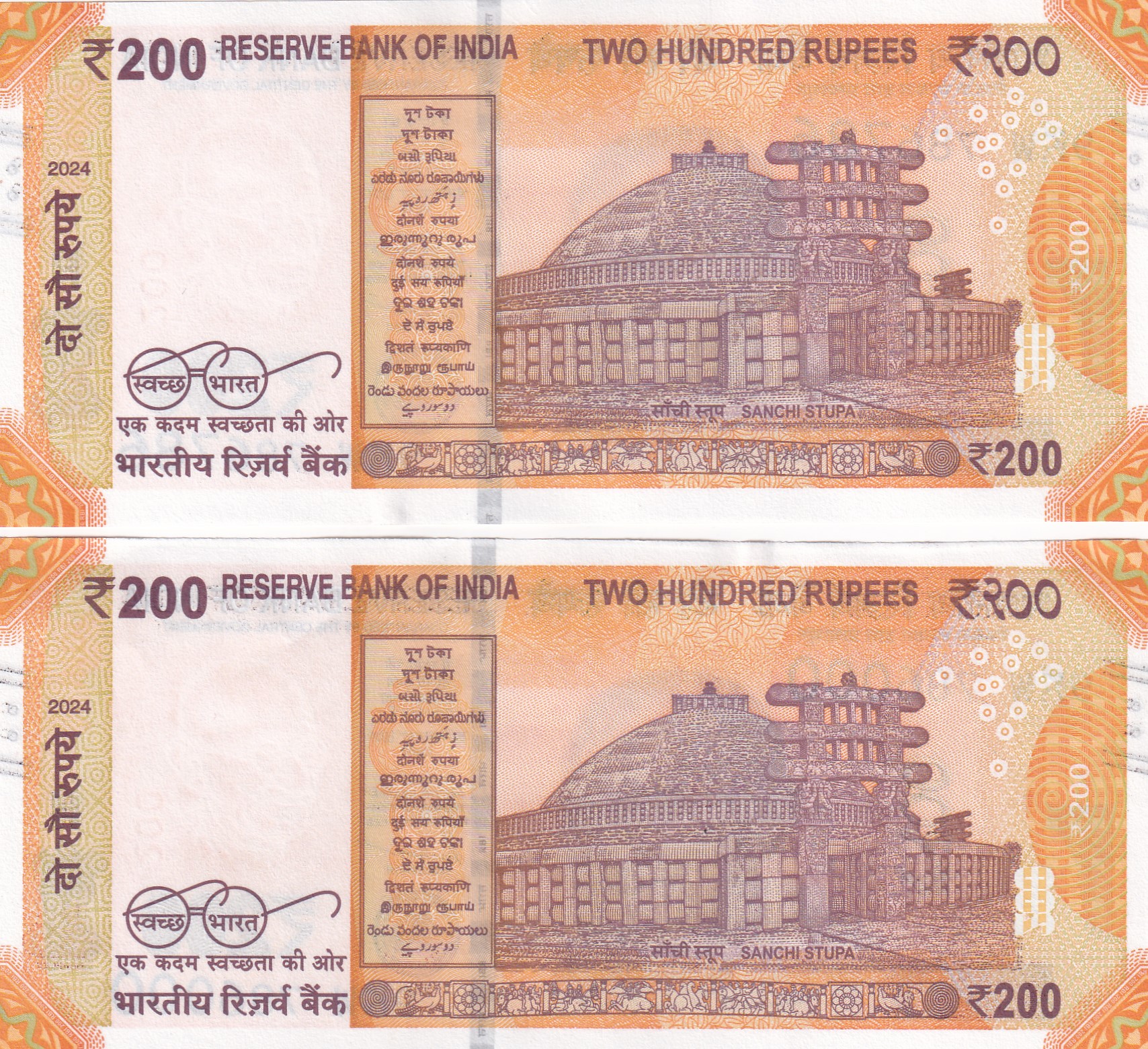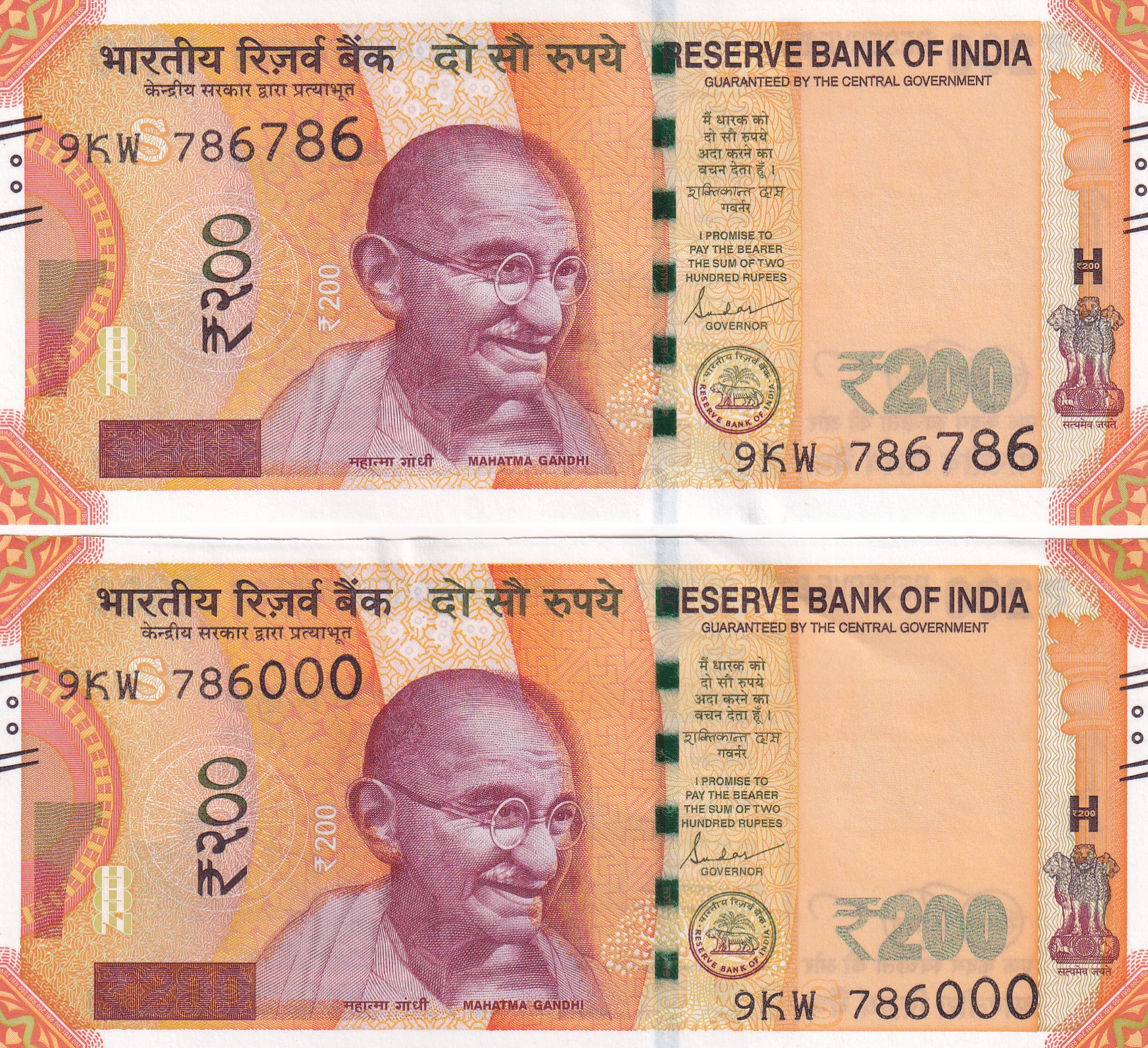 786786 + 786000 FANCY NUMBER SAME PREFIX 200 RUPEES GEM UNC RARE (2 NOTE SET)