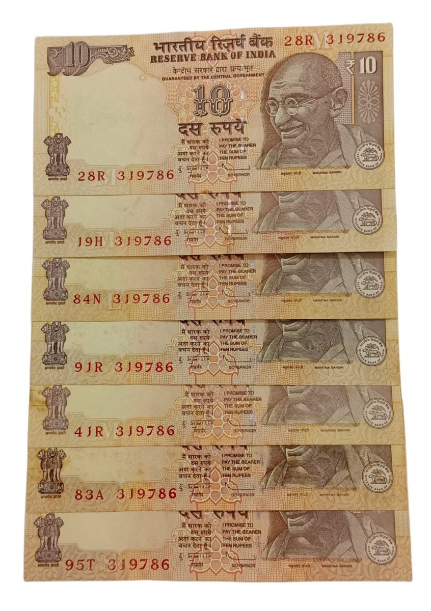 ![10 Rupees GANDHI Issue D. SUBBARAO with SEMI-FANCY SAME [319786] Serial Numbers Ending 786 Lot 7 Notes **RARE** UNC Grades.](https://coinbazzar.com/wp-content/uploads/2024/09/1727716931694.jpg)