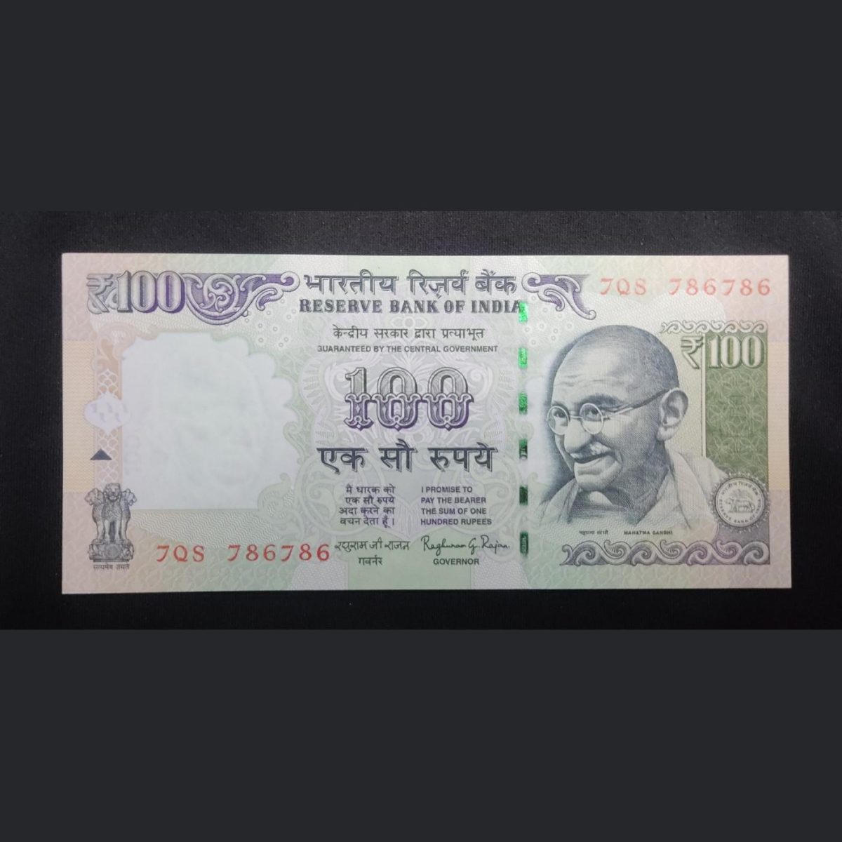 100 rupee note with serial number 786786 UNC condition Slightly Shifting ERROR From Back Side