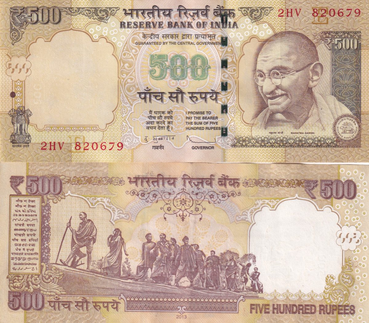 D.Subbarao 2013 (E Insert) Without pen mark 500 Rupees Top Condition Note