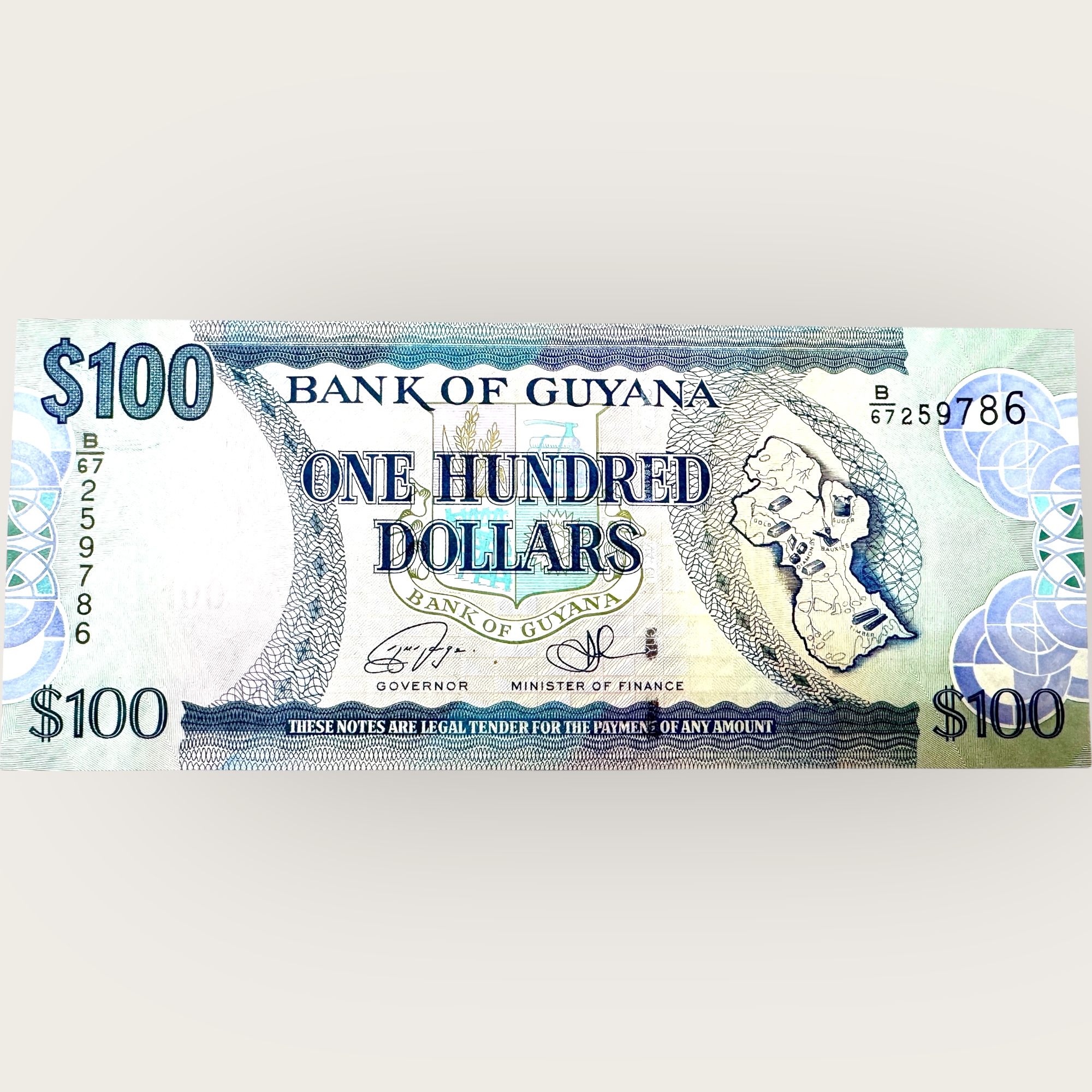 Guyana 100 Dollars Issue World Banknote Ending 786 Series Unique and Rare