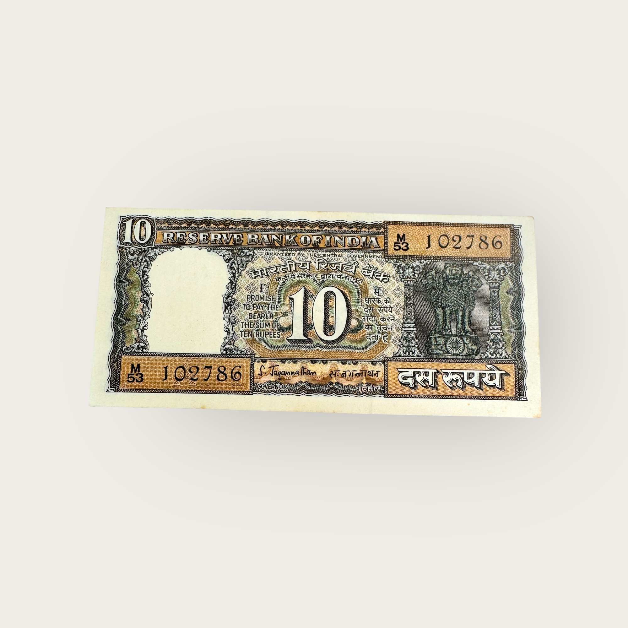 Rs 10 Black Boat Issue Signed By S Jagganathan Inset A Ending 786 UNC Unique and Rare