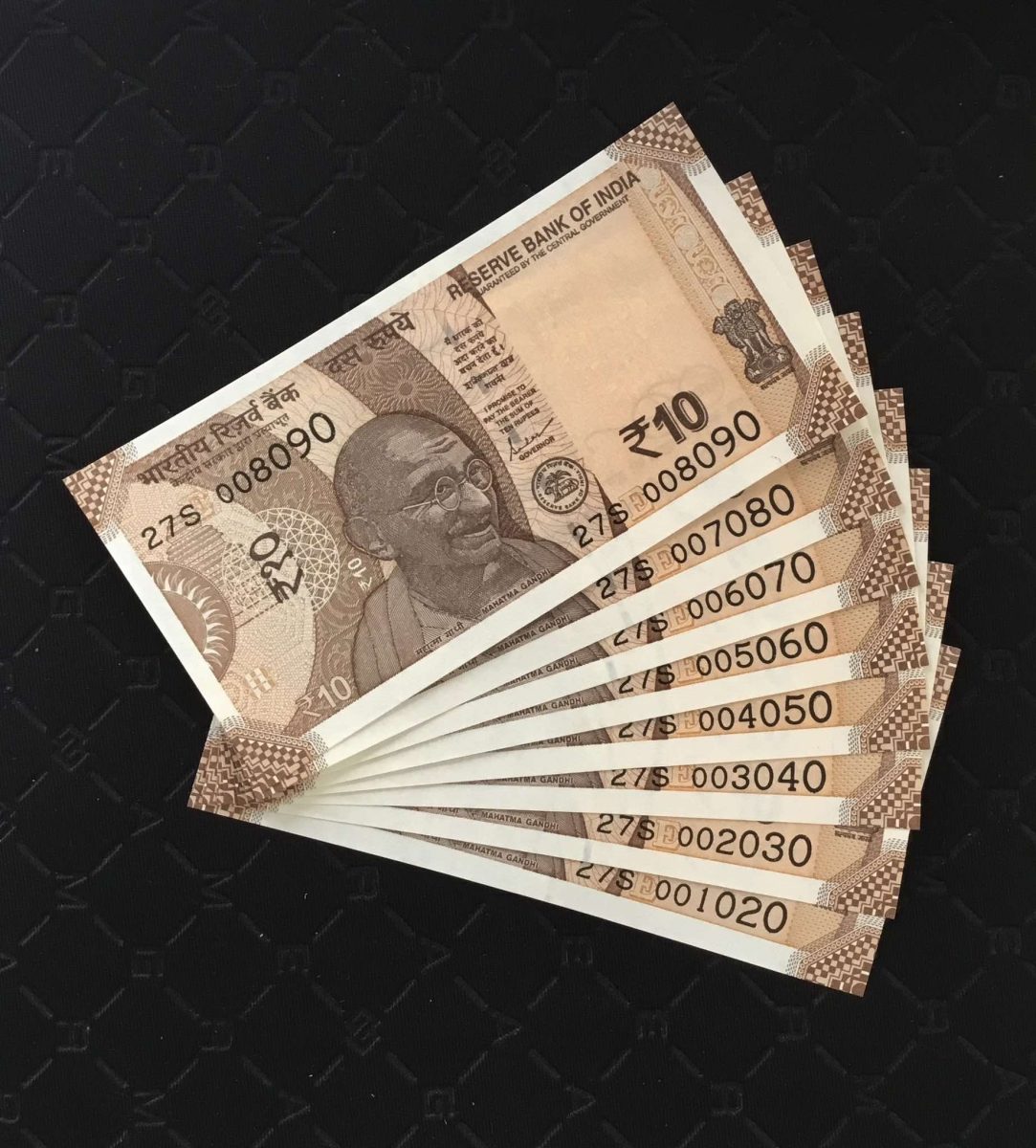 Rs 10 INDIA Bank note SEMI FANCY NUMBER 001020 to 008090 Issue Very Unique and Rare