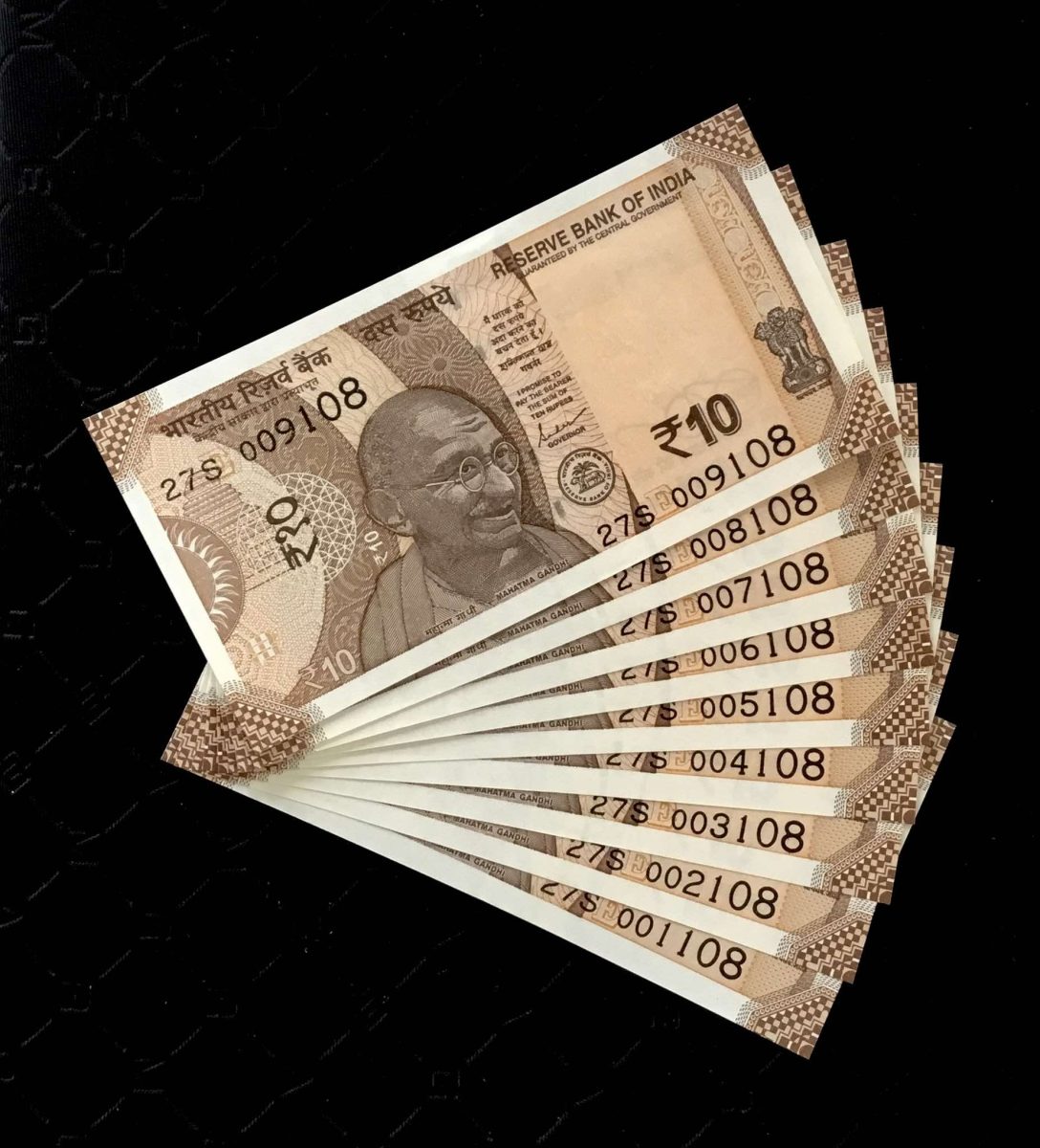 Rs 10 INDIA Bank note SEMI FANCY NUMBER 001108 to 009108 Issue Very Unique and Rare