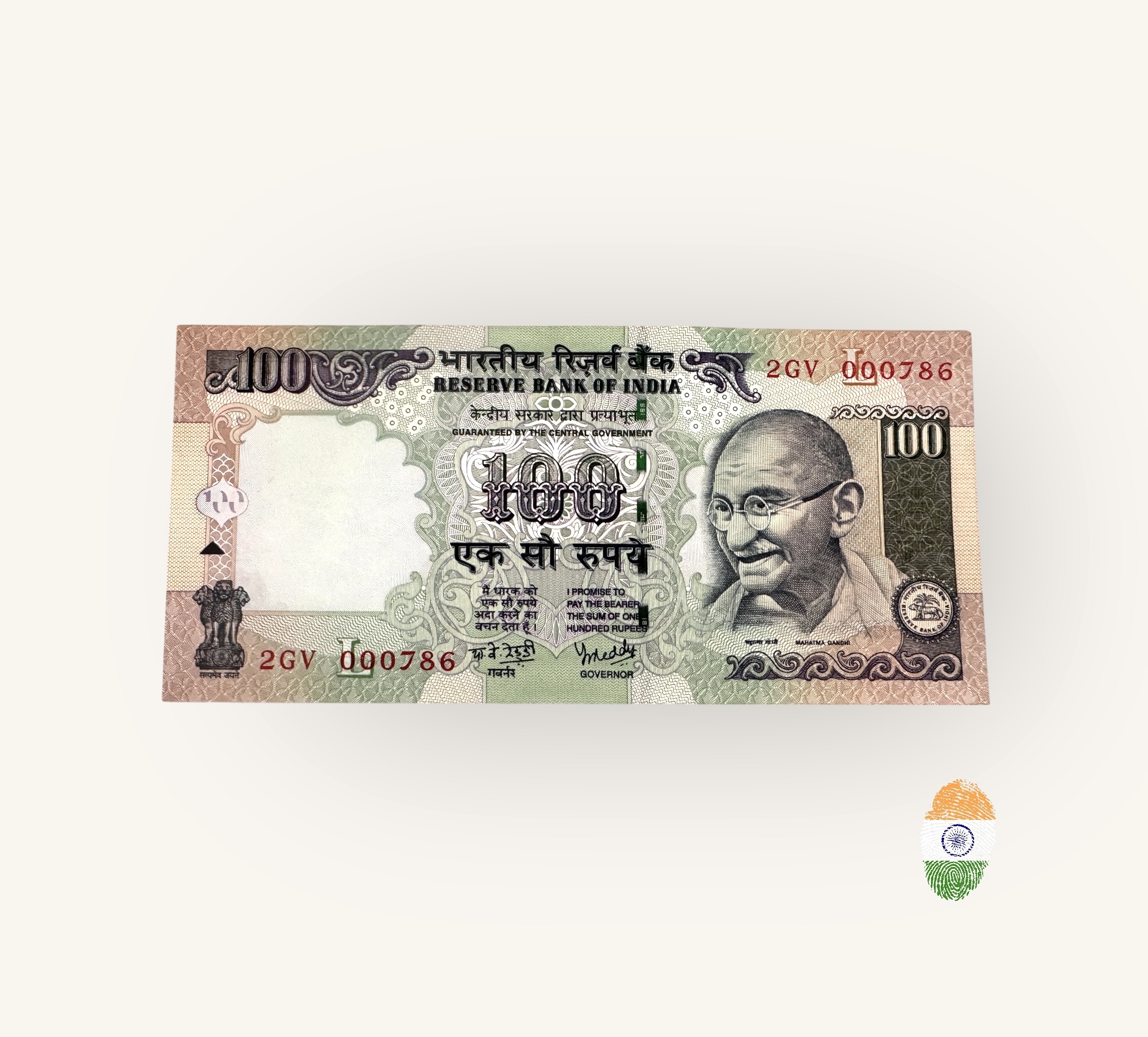 🏷️ Rare Rs 100 India Banknote with Fancy Number 000786