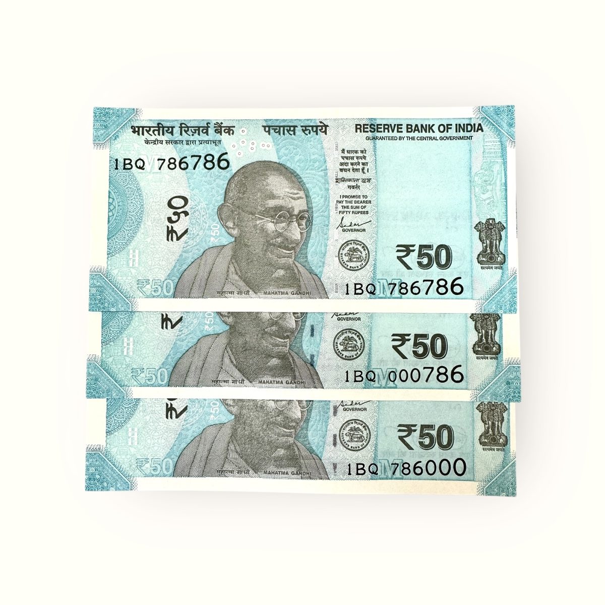 Rs 50 India Banknote Same Prefix Extreme Rare Issue Holy Number 1BQ 786000 786786 And 000786 Gem Unc Unique and Rare