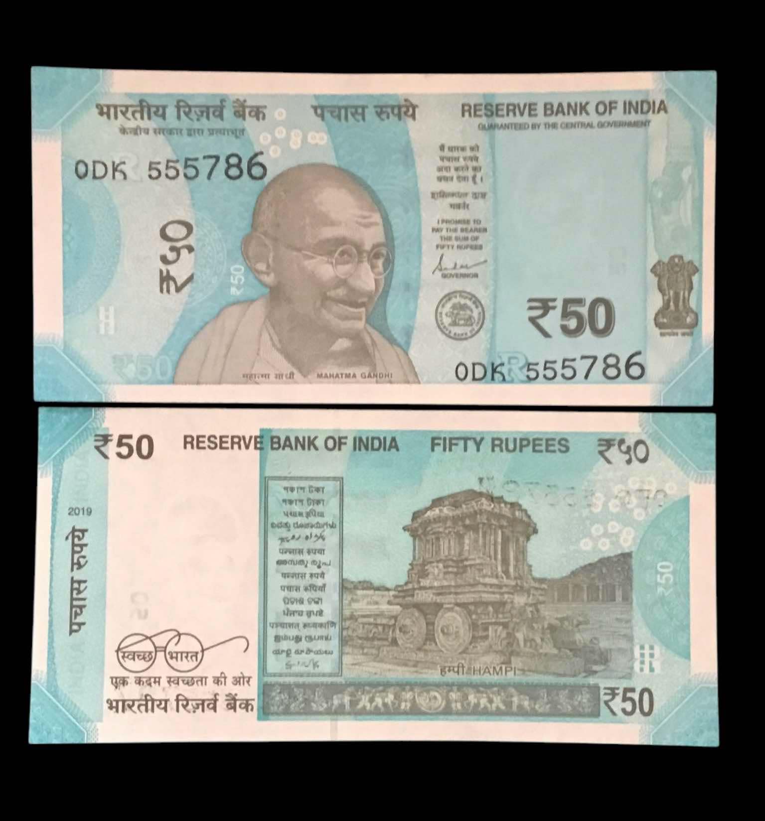 Rs 50 India Banknote Holy Serial Number 555786 Gem Unc Very Unique and Rare