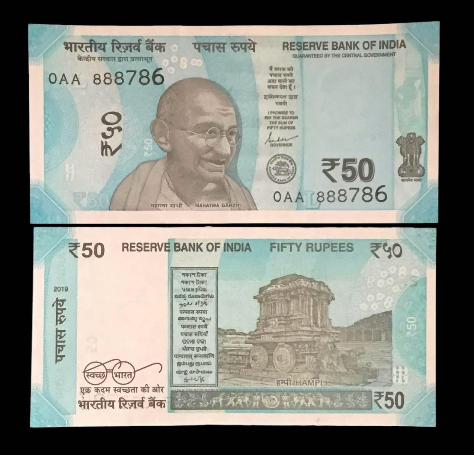 Rs 50 India Banknote Holy Serial Number 888786 Gem Unc Very Unique and Rare