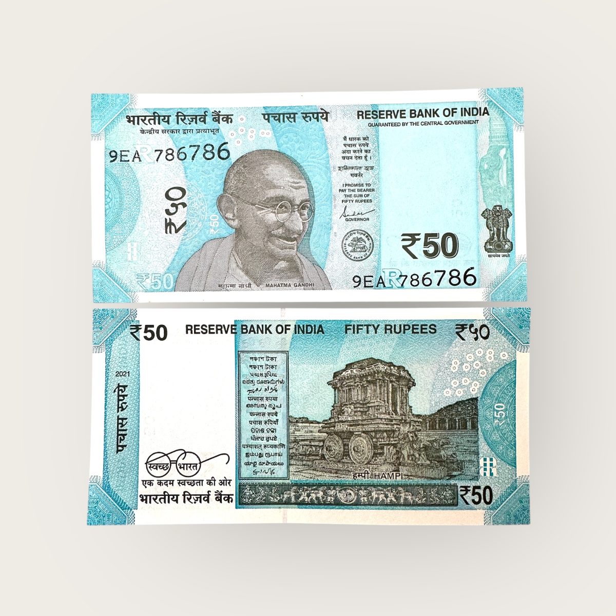 Rs 50 India Banknote Solid Fancy Number 786786 GEM UNC UNIQUE COLLECTION BANKNOTE