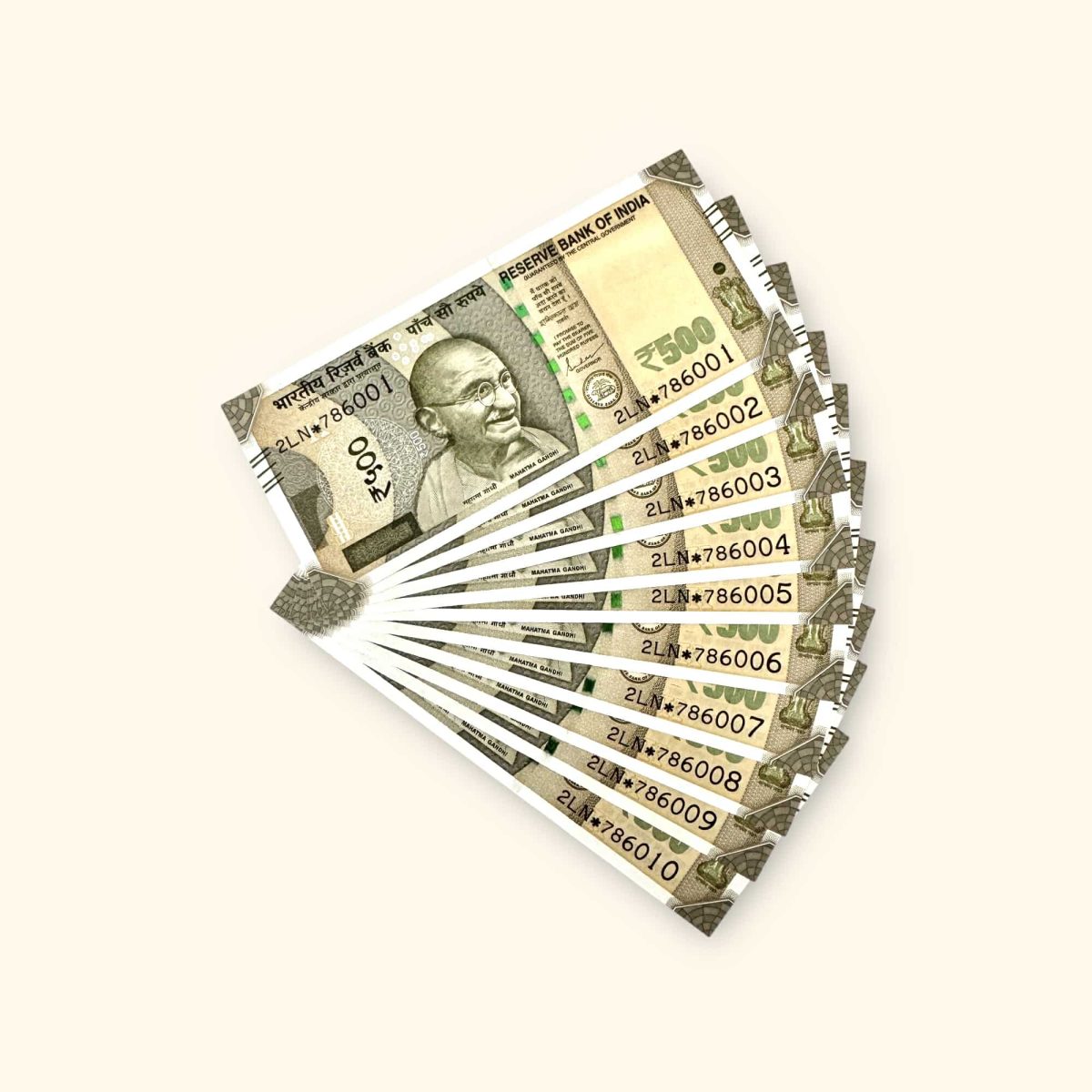 Rs 500 India Banknote Holy Serial Set Star Replacement Issue 786001 to 786010 GEM Unc Unique and Rare