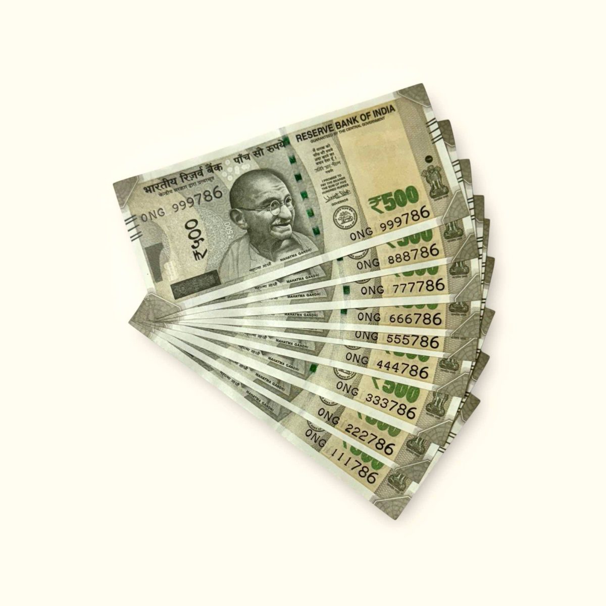 Rs 500 India Banknote Same Prefix 111786 to 999786 GEM UNC Unique and Rare