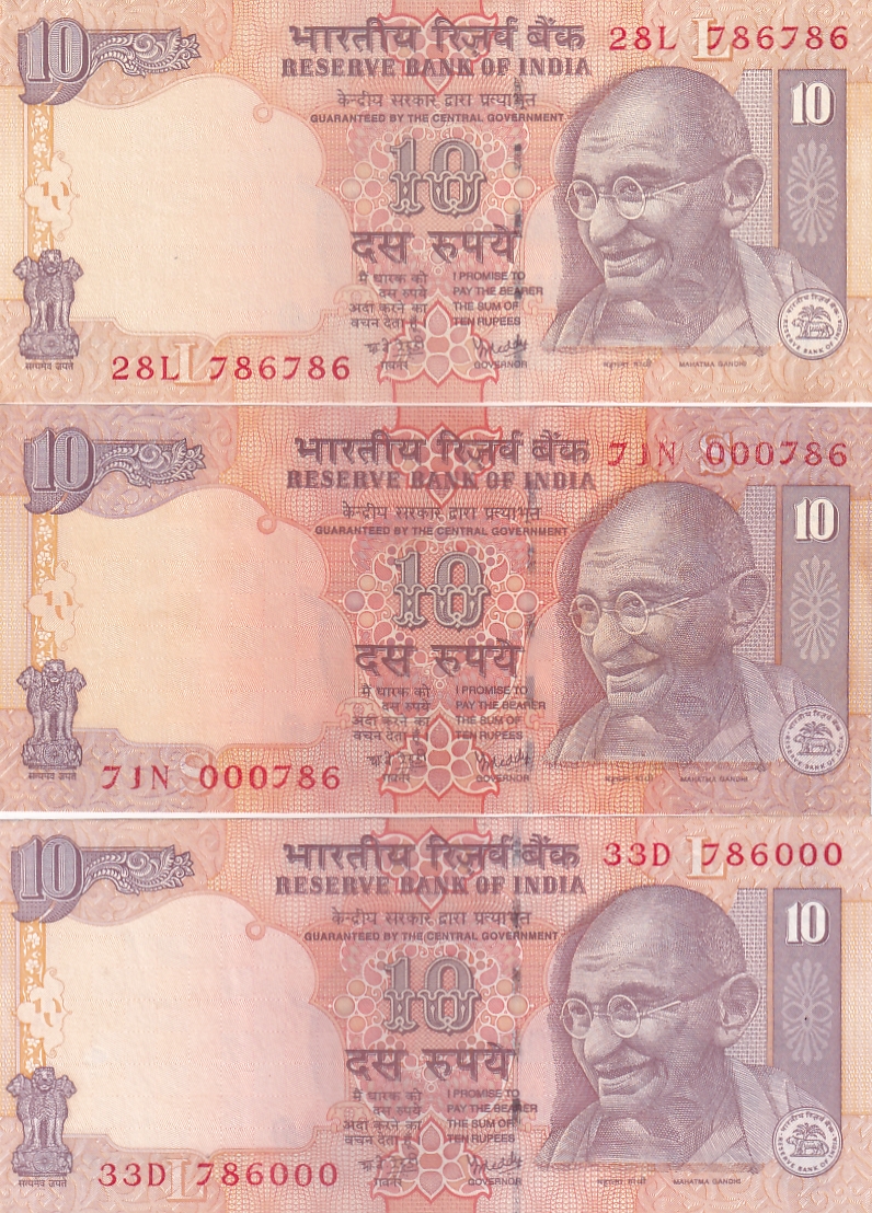 YV Reddy 786786 786000 & 000786 Three Super Fancy Number Unc Set Rare