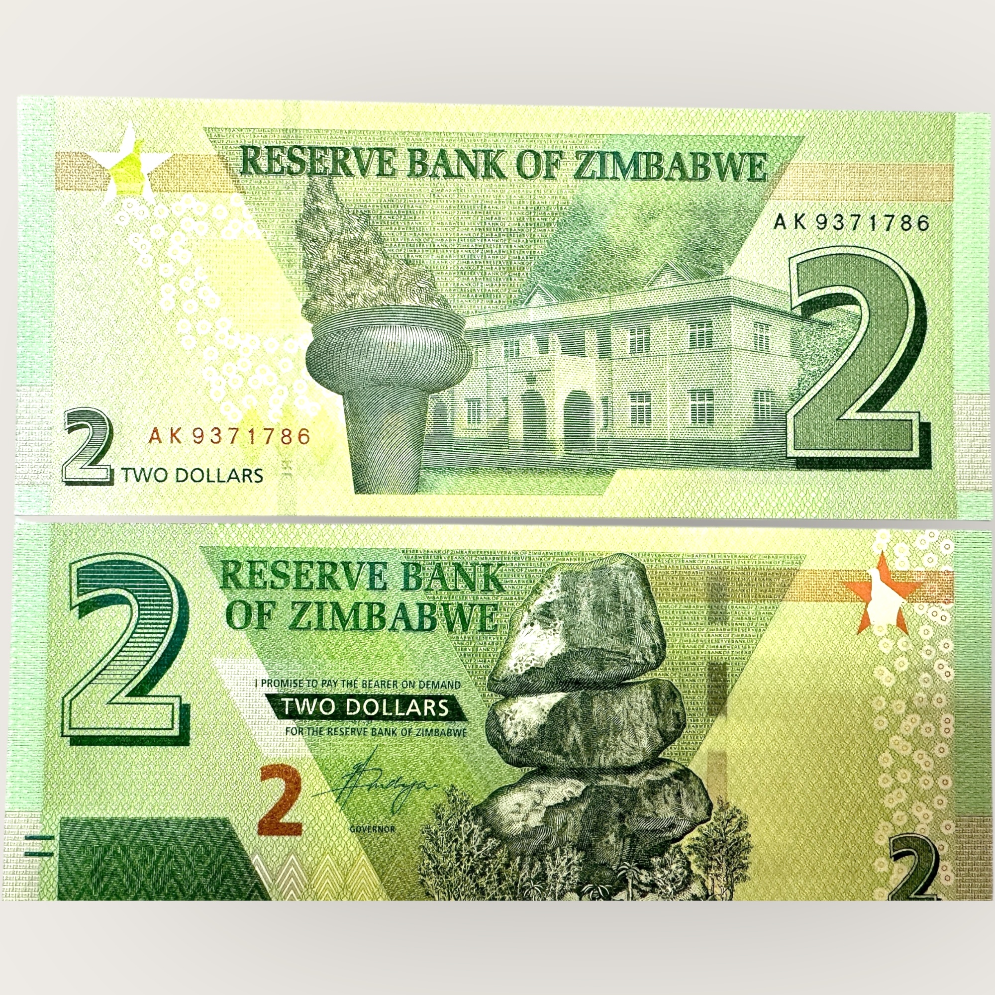 Zimbabwe 2 Dollars World Banknote Ending 786 Series Unique and Rare